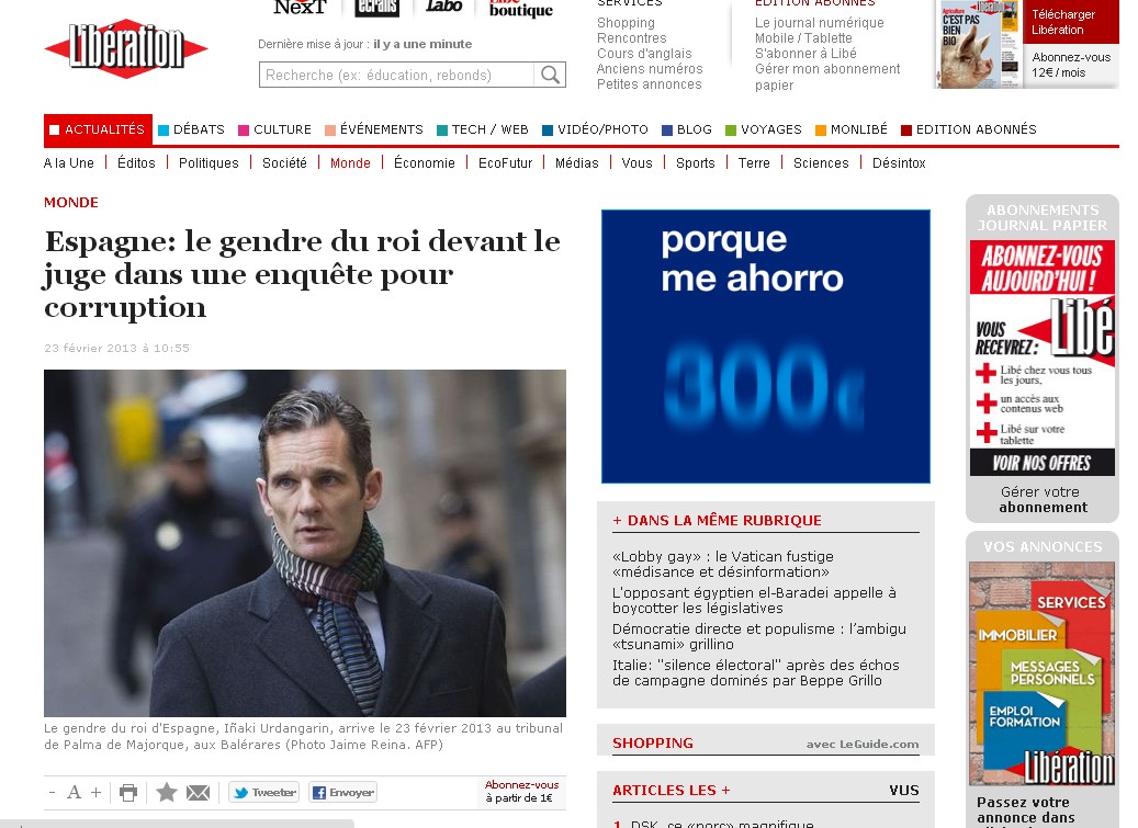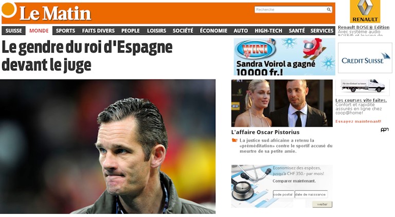 El yerno del Rey también es noticia de última hora en el diario francés.
