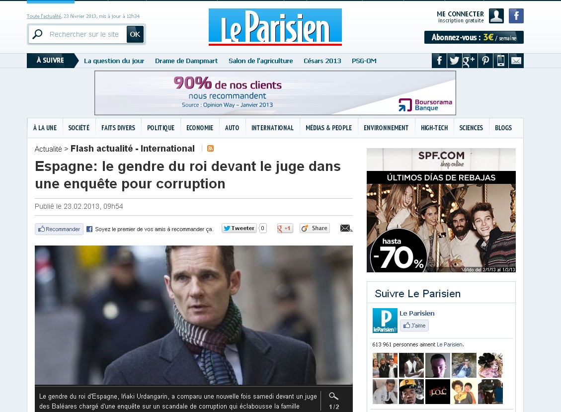 Le Parisien incluye una cobertura sobre la declaración de Iñaki Urdangarín.