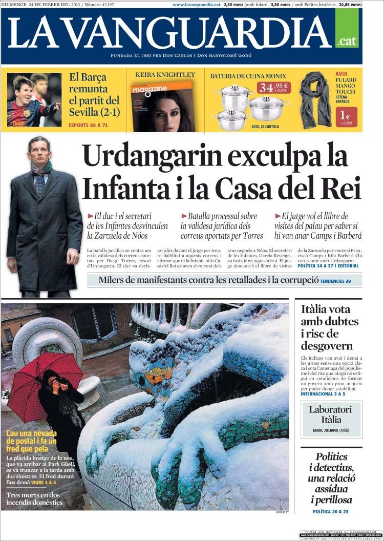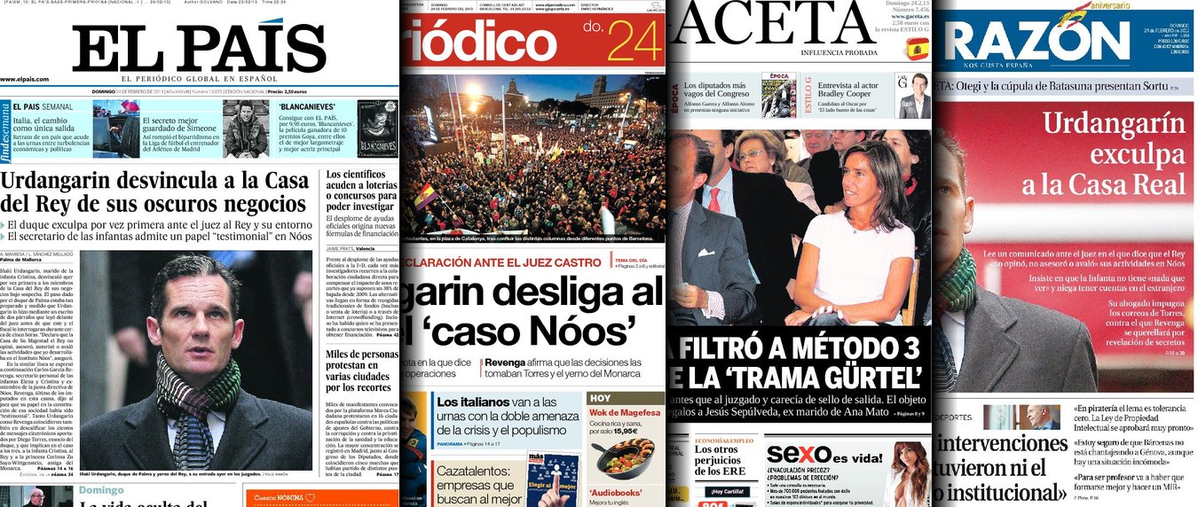 Portadas de los diarios ABC, El País, La Razón, La Gaceta y El Periódico.
