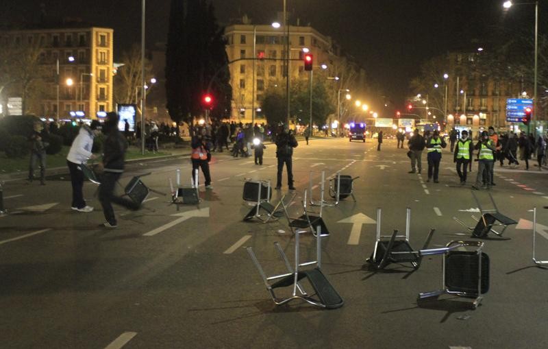 La autodenominada "marea social" de este sábado en Madrid derivó en vandalismo y disturbios. En total 45 detenidos, nueve de ellos menores, 40 heridos, contendores calcinados e incautación de cócteles molotov.