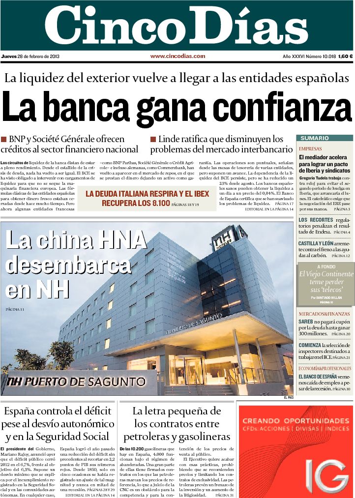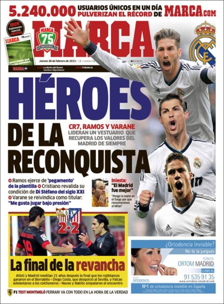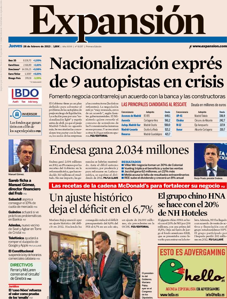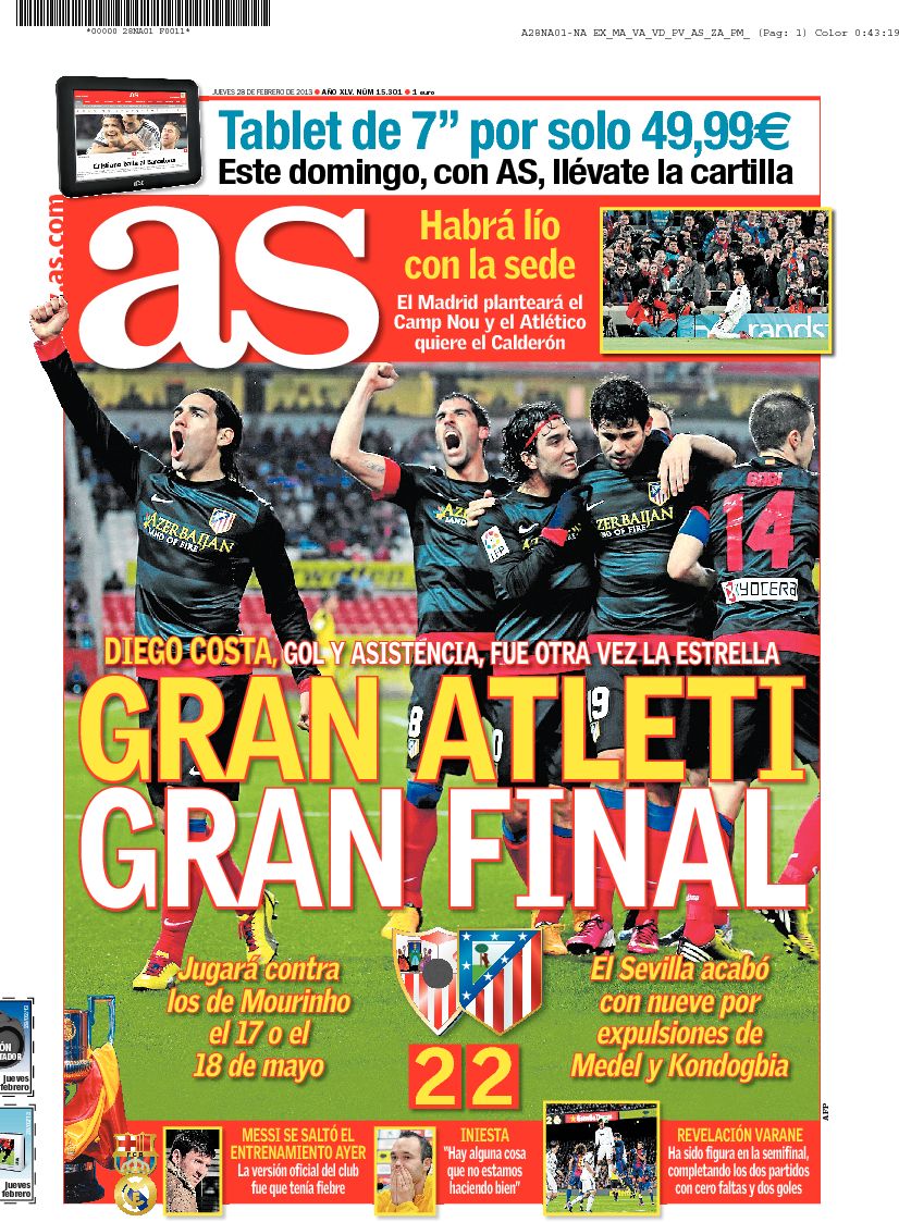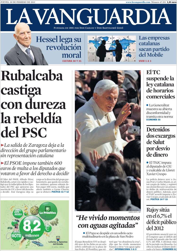 Portadas de los diarios El Mundo, El País, ABC, La Razón, La Vanguardia, La Gaceta, El Periódico, Cinco Días, El Economista, Expansión, Marca, As, Mundo Deportivo y Sport.