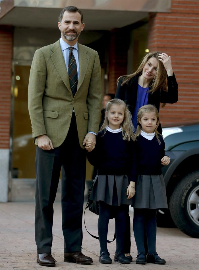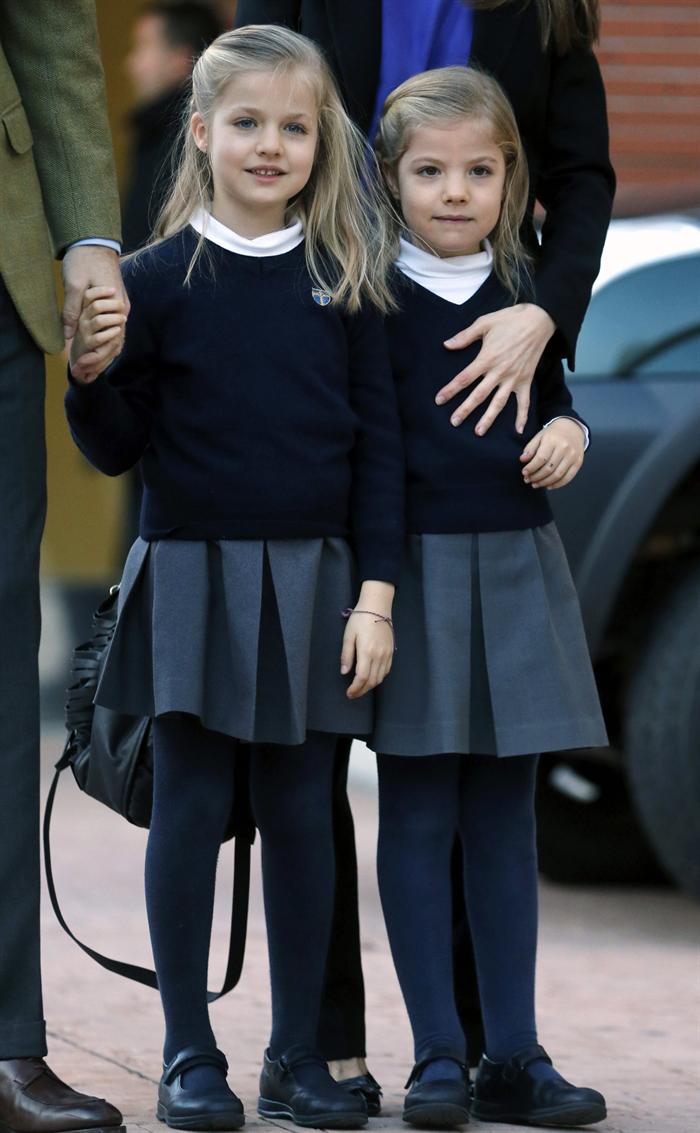 Primer plano de las infantas que nada más salir de colegio acudieron a ver junto a sus padres al Rey