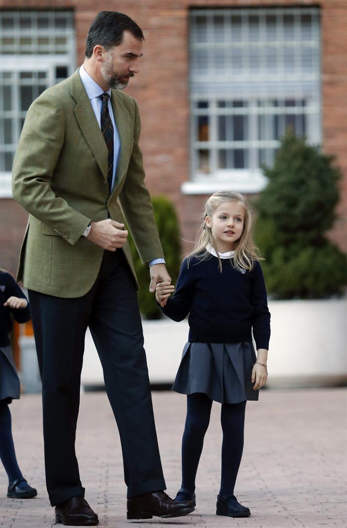 El Príncipe y su hija Leonor de la la mano a la entrada de La Milagrosa