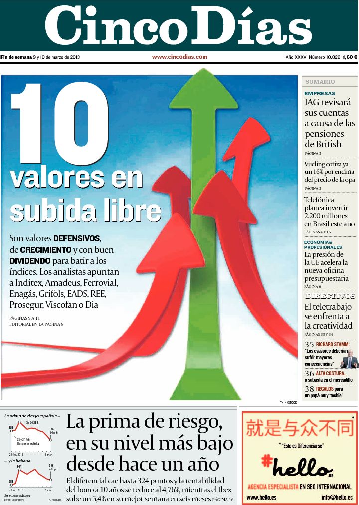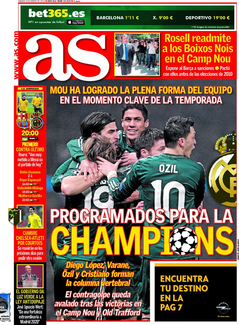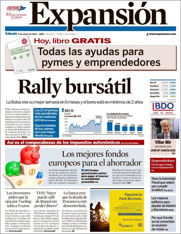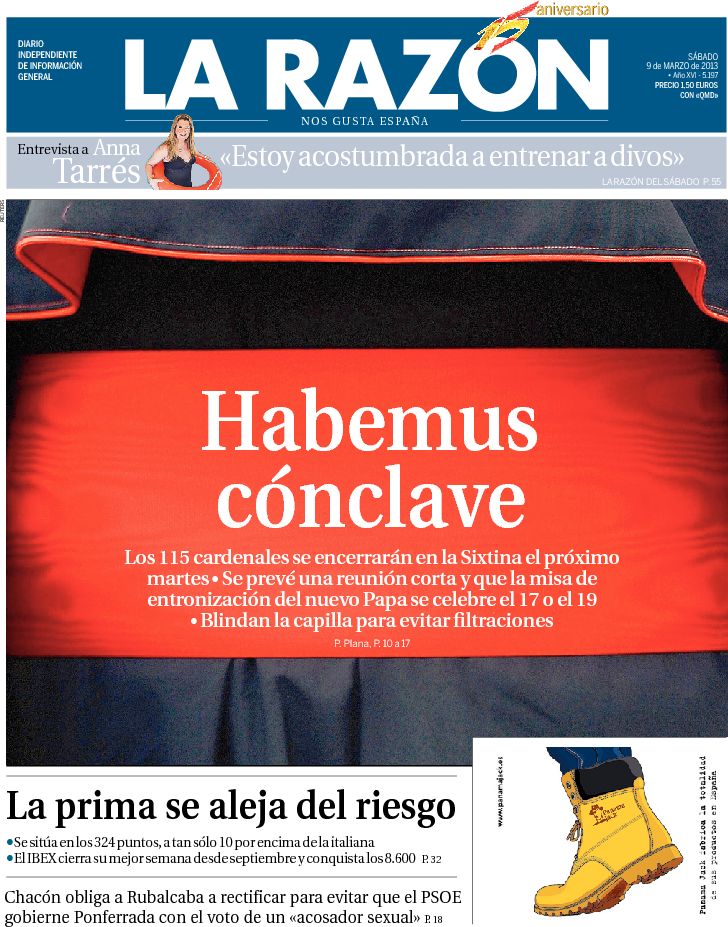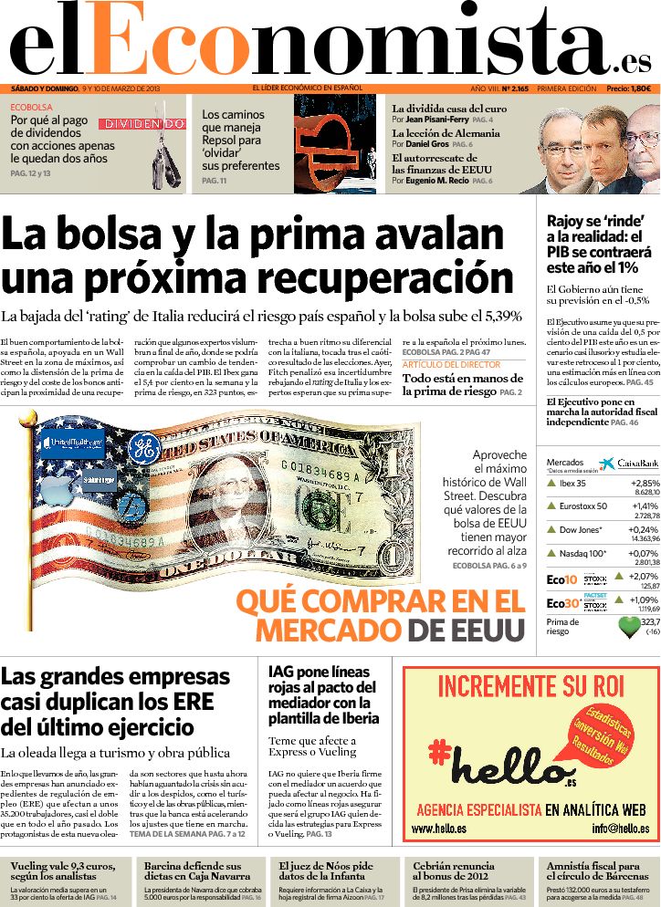 Portadas de los diarios ABC, El País, La Razón, La Gaceta, El Periódico, Cinco Días, El Economista, As y La Vanguardia.