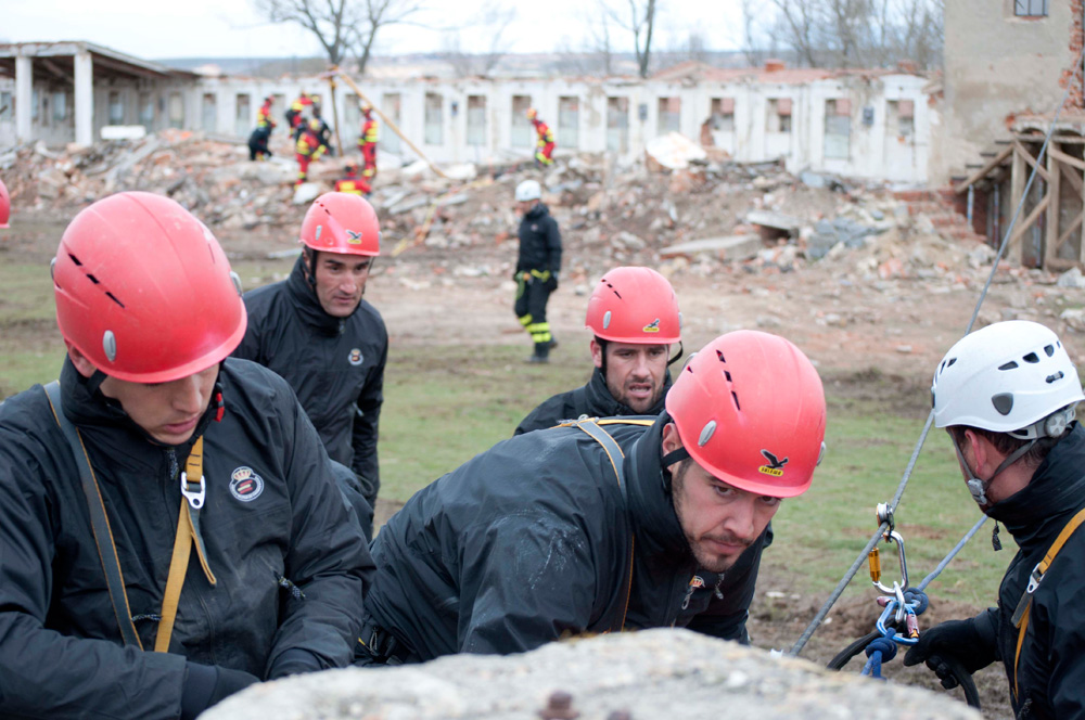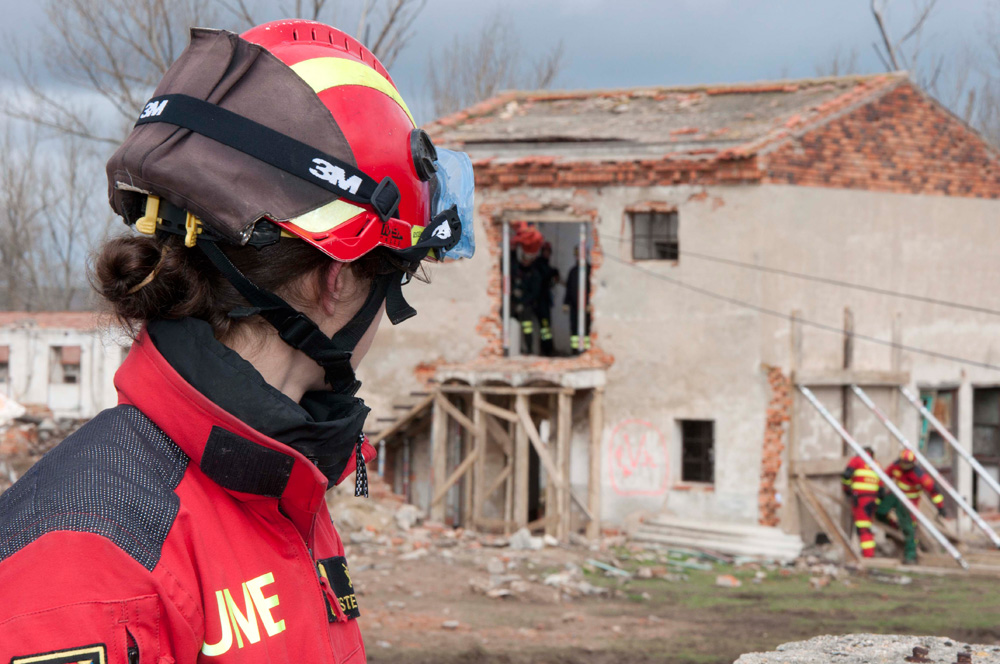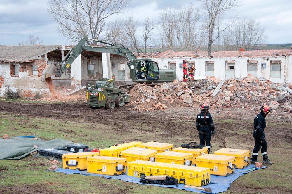 El derrumbamiento de un edificio, con heridos atrapados entre los escombros, fue el punto de partida del primer simulacro de la mañana