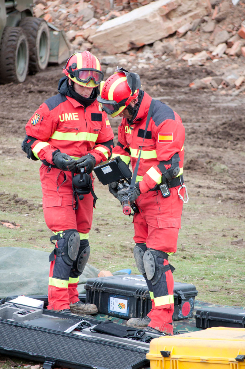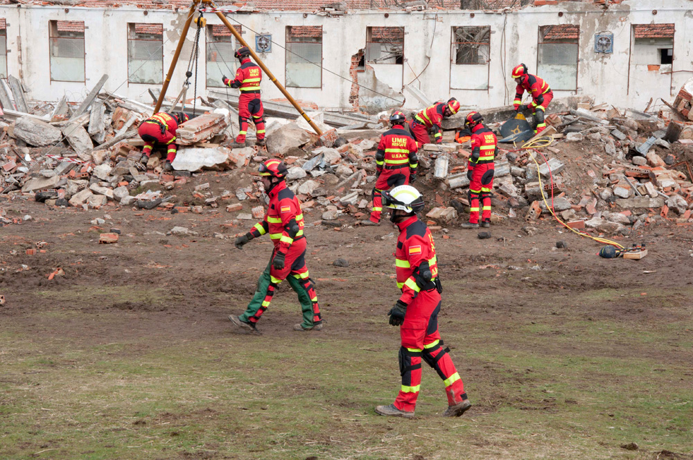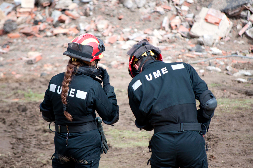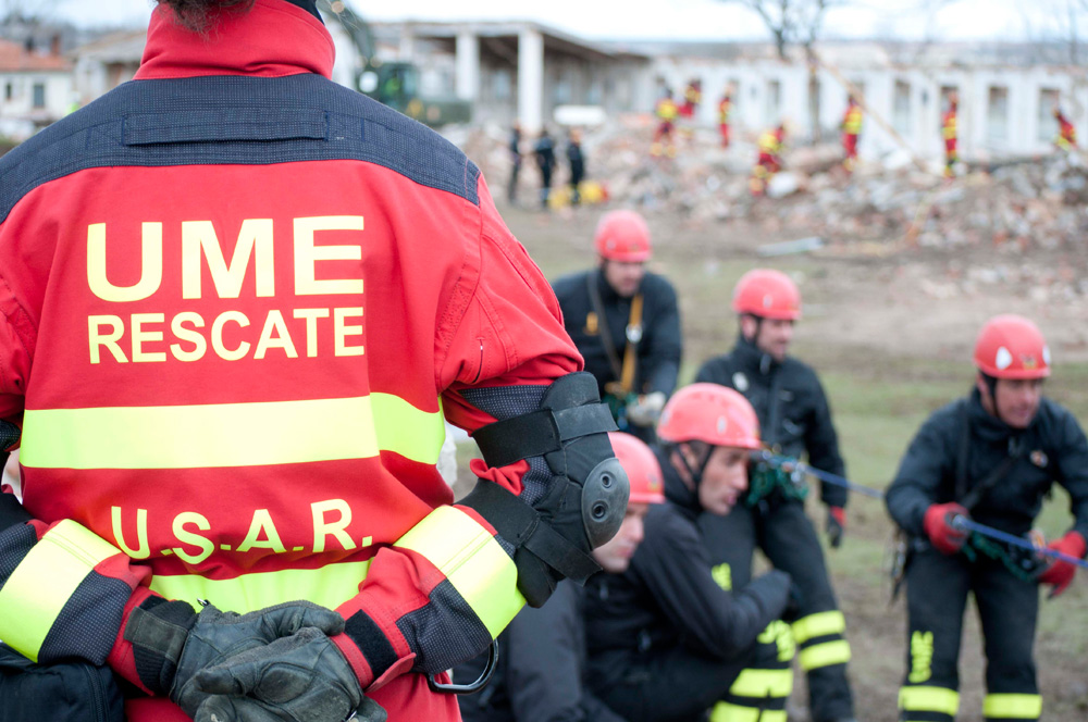 Miembros de los equipos de Búsqueda y Rescate Urbano de la UME