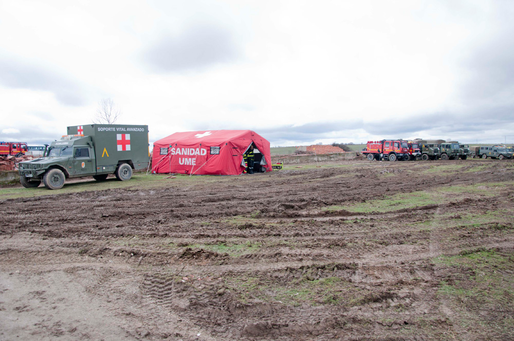 Además de vehículos especiales, la UME también dispone de tiendas de campaña y equipos sanitarios de primer nivel