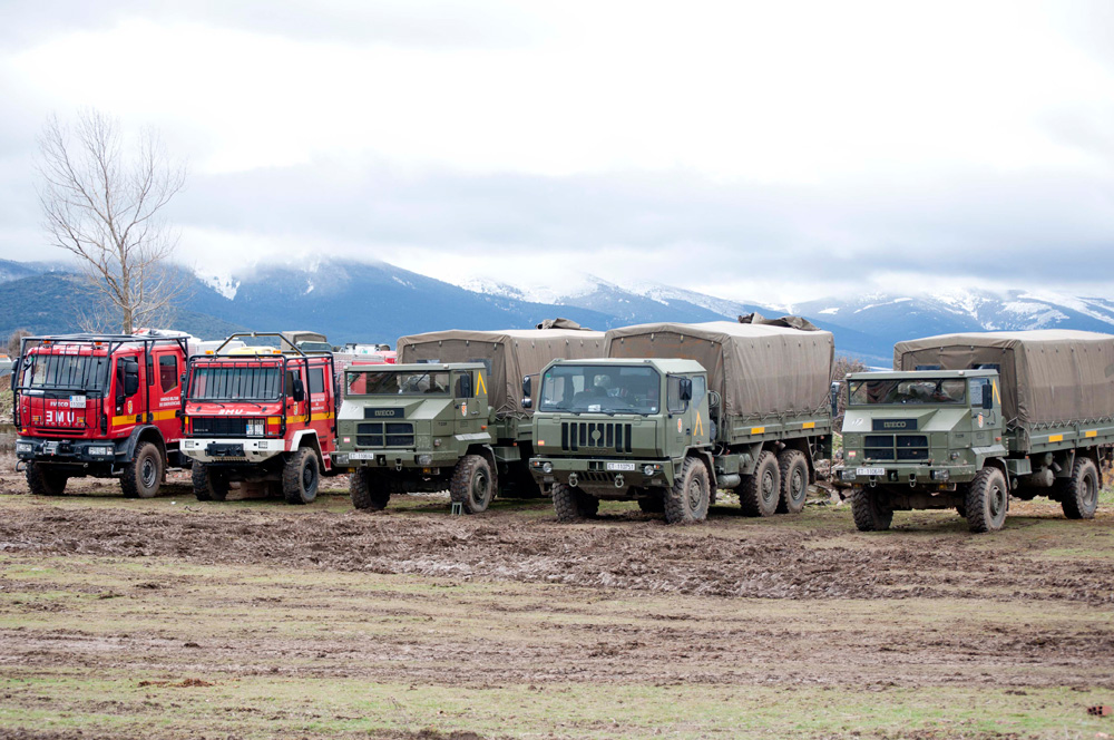 Las cercanías de la ciudad de Segovia fue la zona escogida para el simulacro de emergencia nacional denominado Gamma Palazuelos 2013. En la foto, algunos de los vehículos utilizados