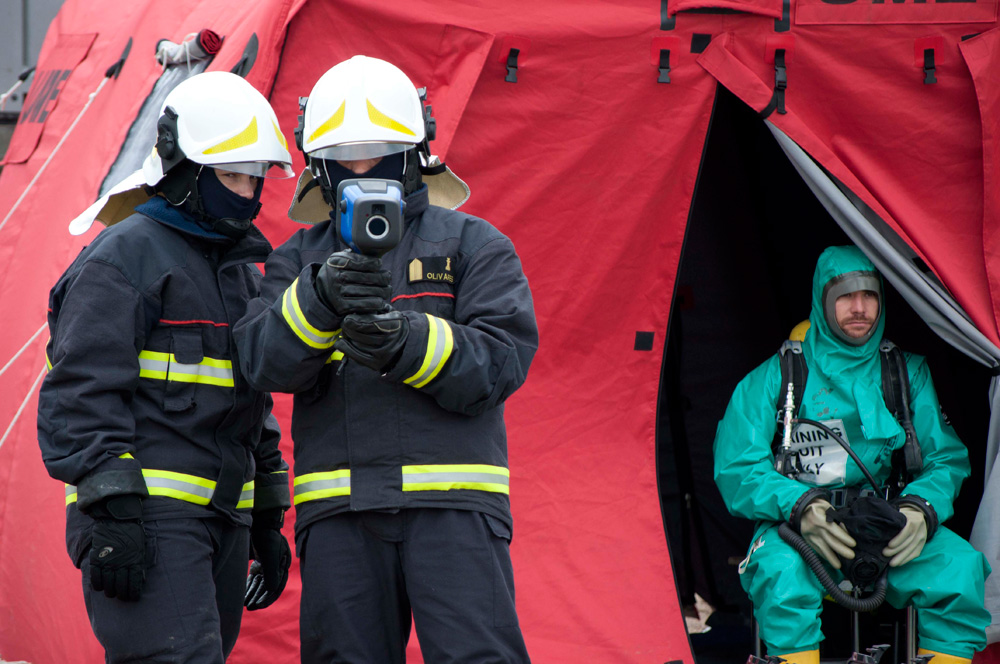 Además de protegerles, el traje especial les permite poder desplazarse por el lugar del desastre