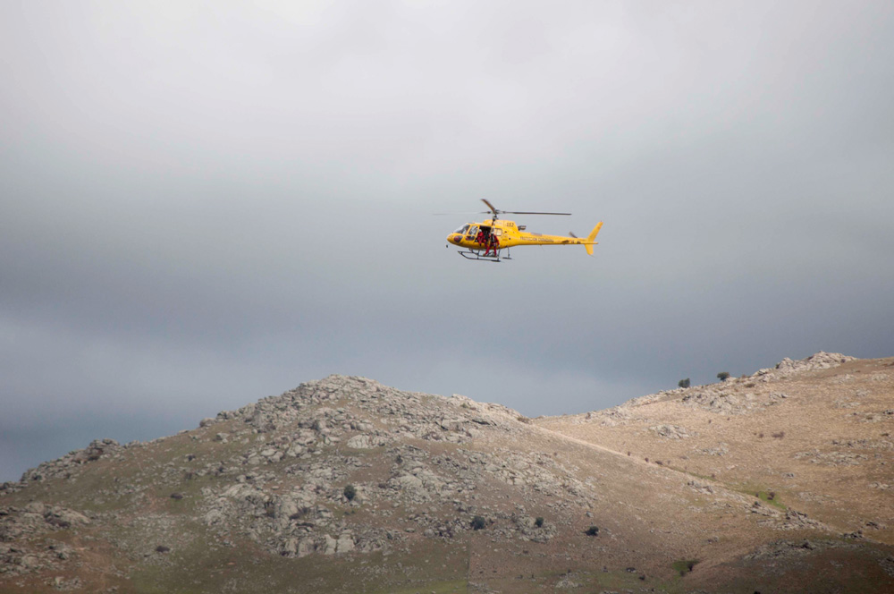 Un helicóptero se dispone a aterrizar para trasladar al herido