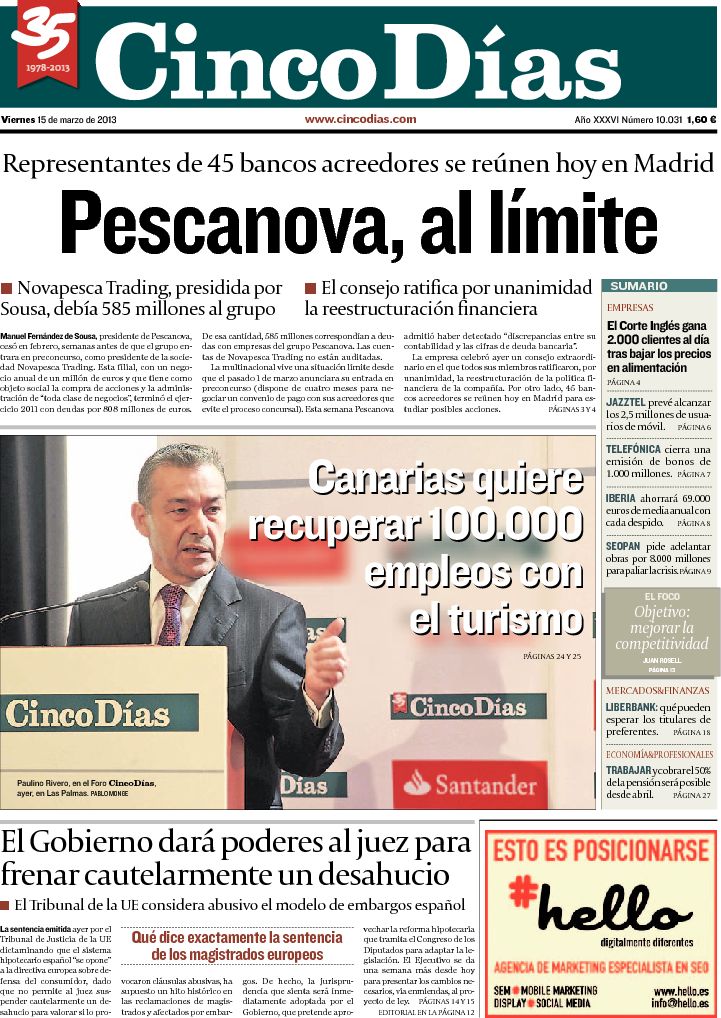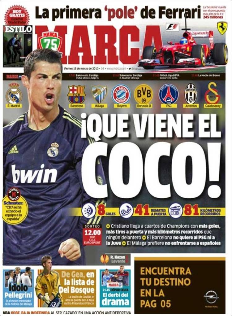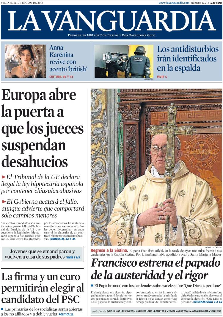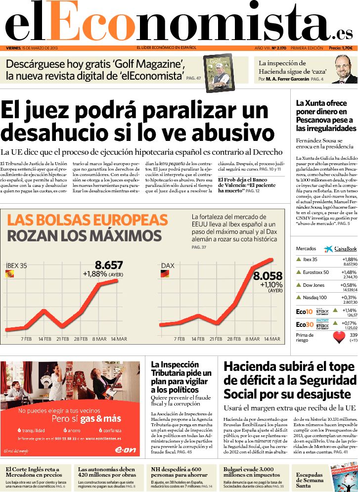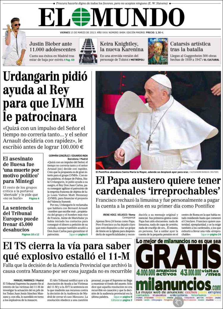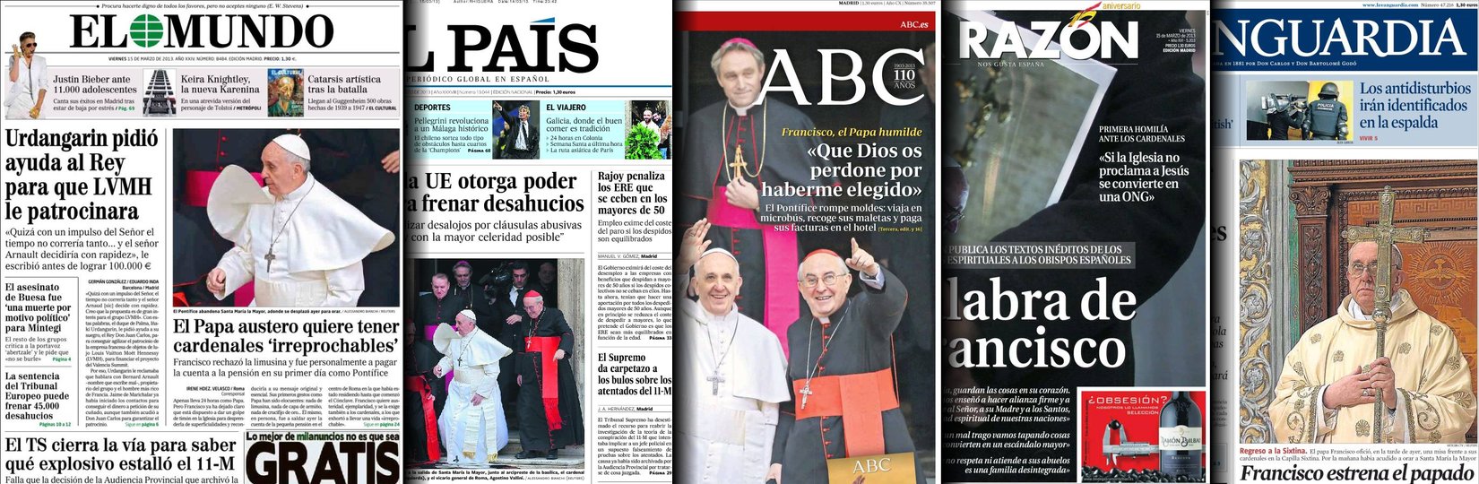 Portadas de los diarios El Mundo, El País, ABC, La Razón, La Vanguardia, La Gaceta, El Periódico, Cinco Días, El Economista, Expansión, Marca, As, Mundo Deportivo y Sport.