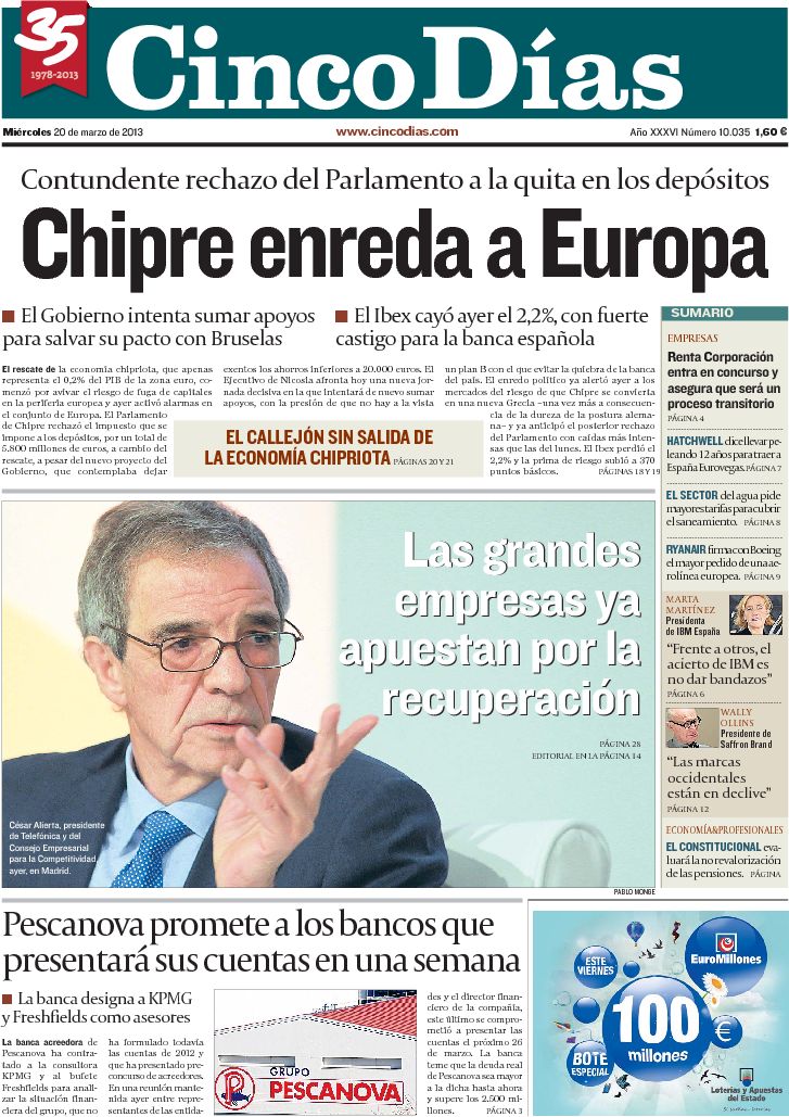 "Chipre lanza un pulso al euro al rechazar las condiciones del rescate"