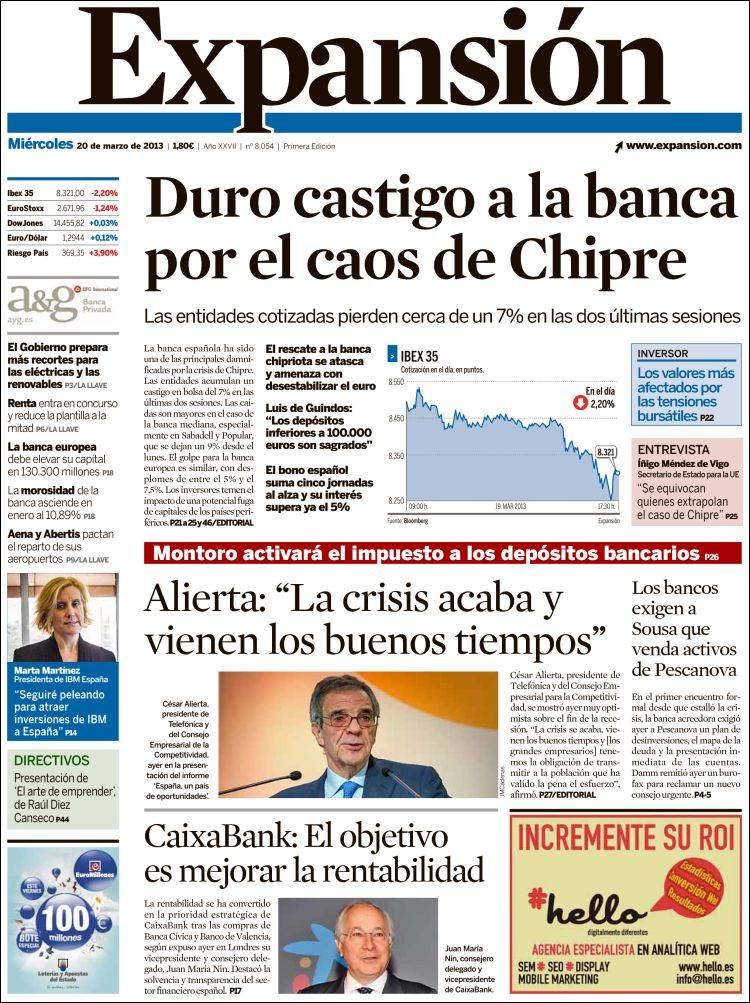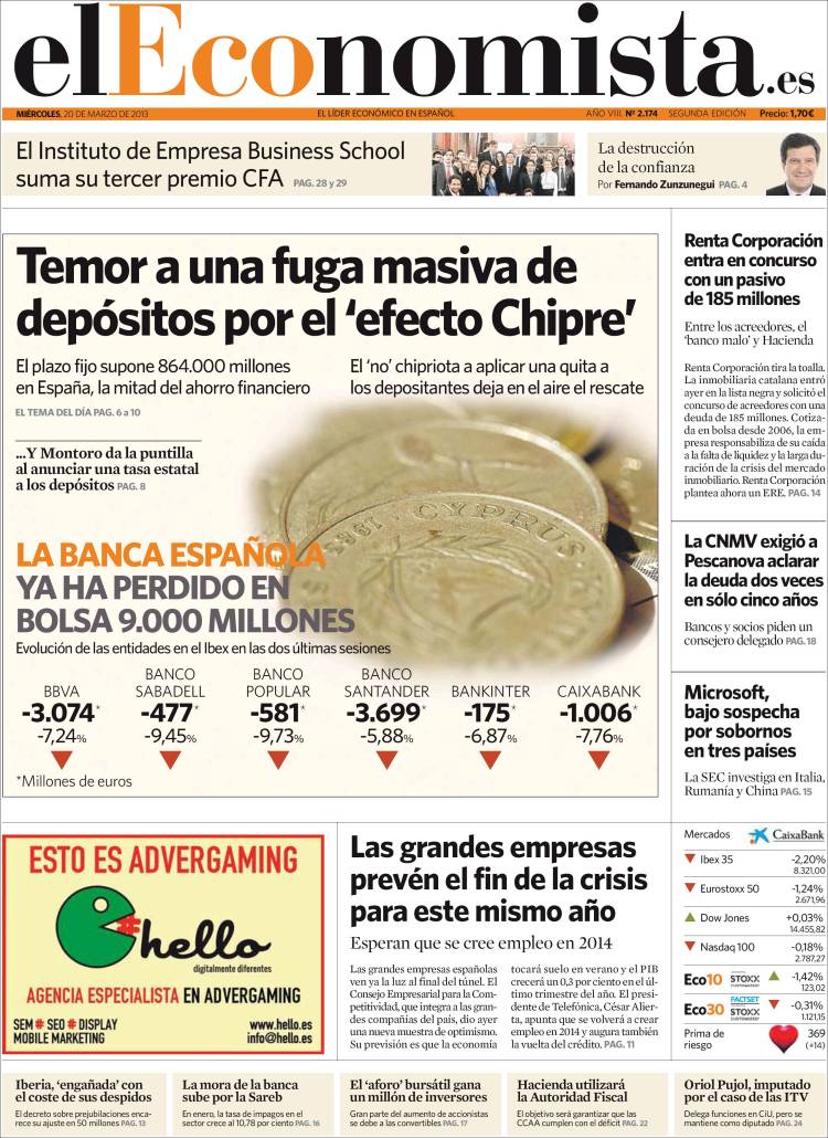 "Temor a una fuga masiva de depósitos por el 'efecto Chipre'"