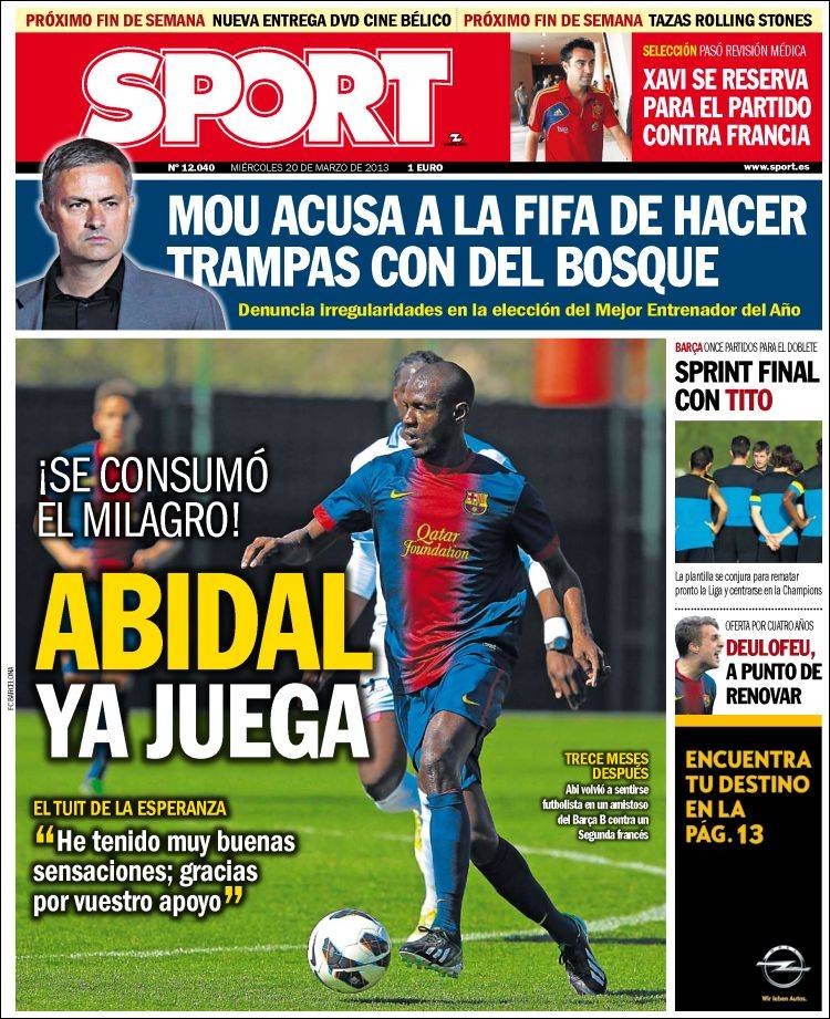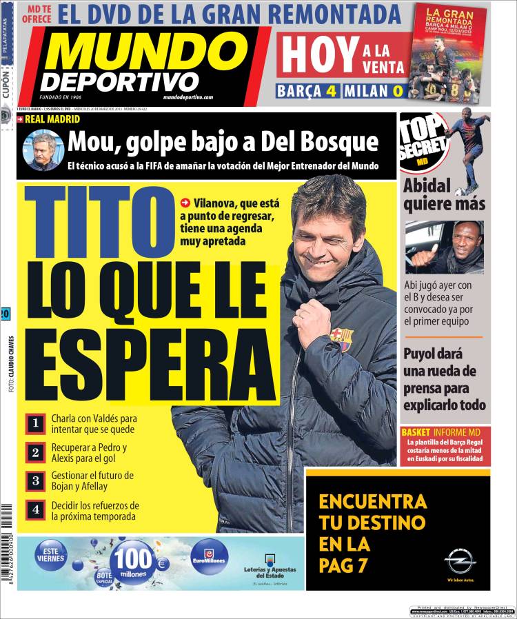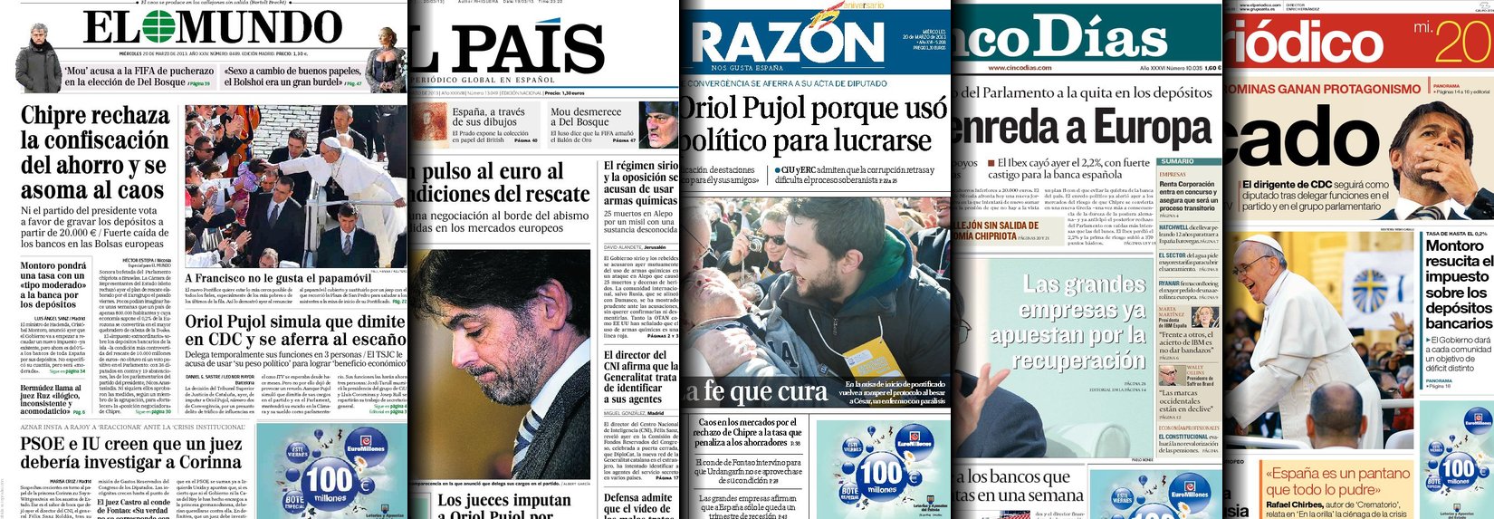 Portadas de los diarios El Mundo, El País, ABC, La Razón, La Vanguardia, La Gaceta, El Periódico, Cinco Días, El Economista, Expansión, Marca, As, Mundo Deportivo y Sport.