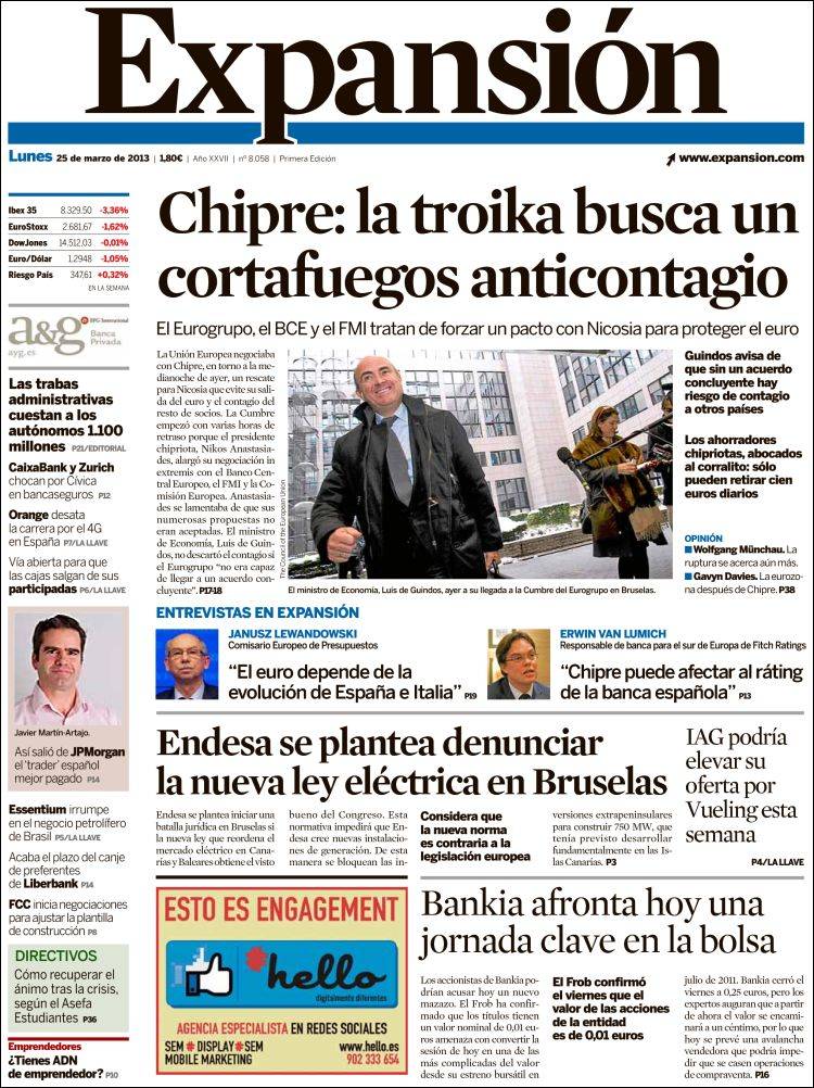 "Chipre: la troika busca un cortafuegos anticontagio"