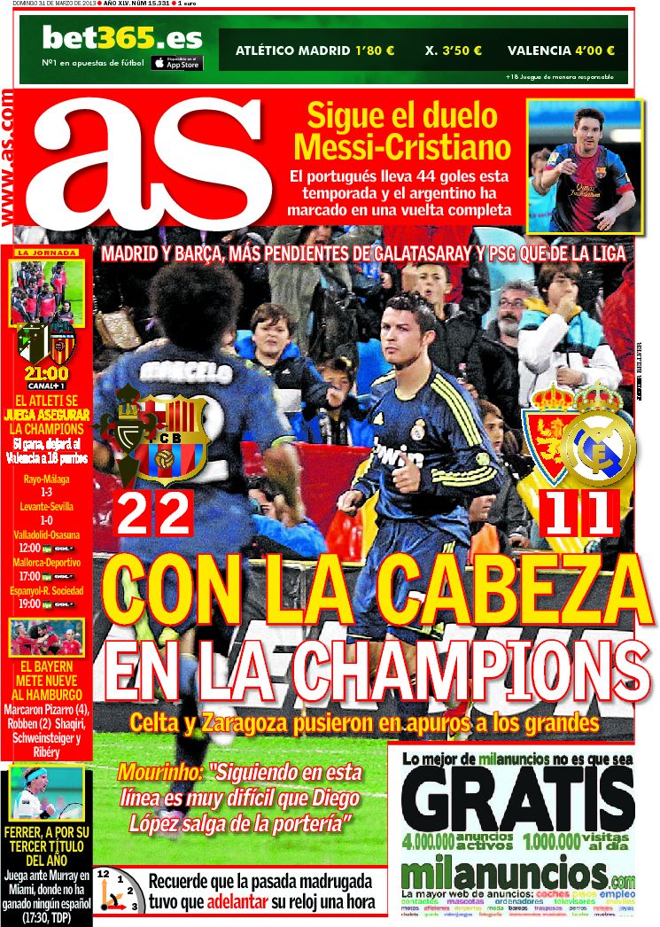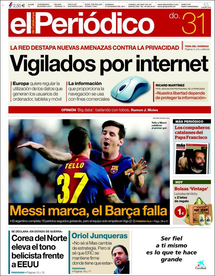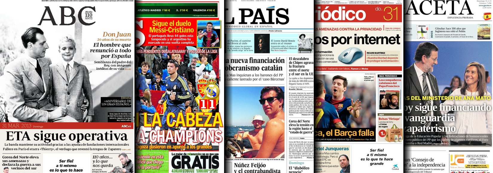Portadas de los diarios El País, La Gaceta, ABC, El Periódico, As y La Vanguardia.