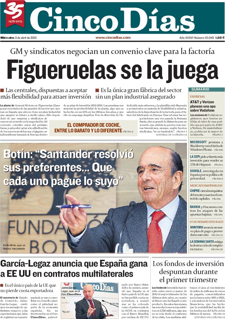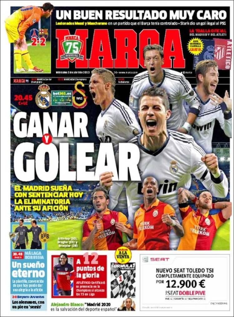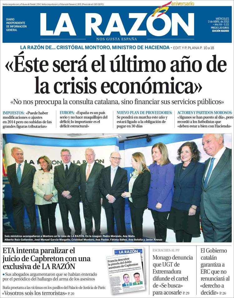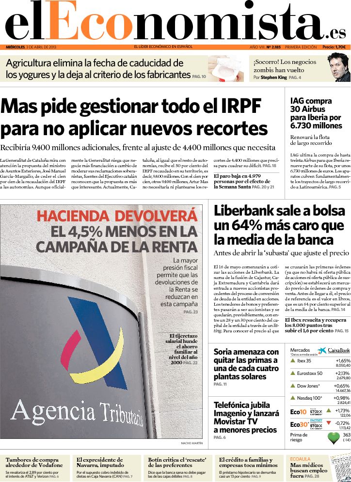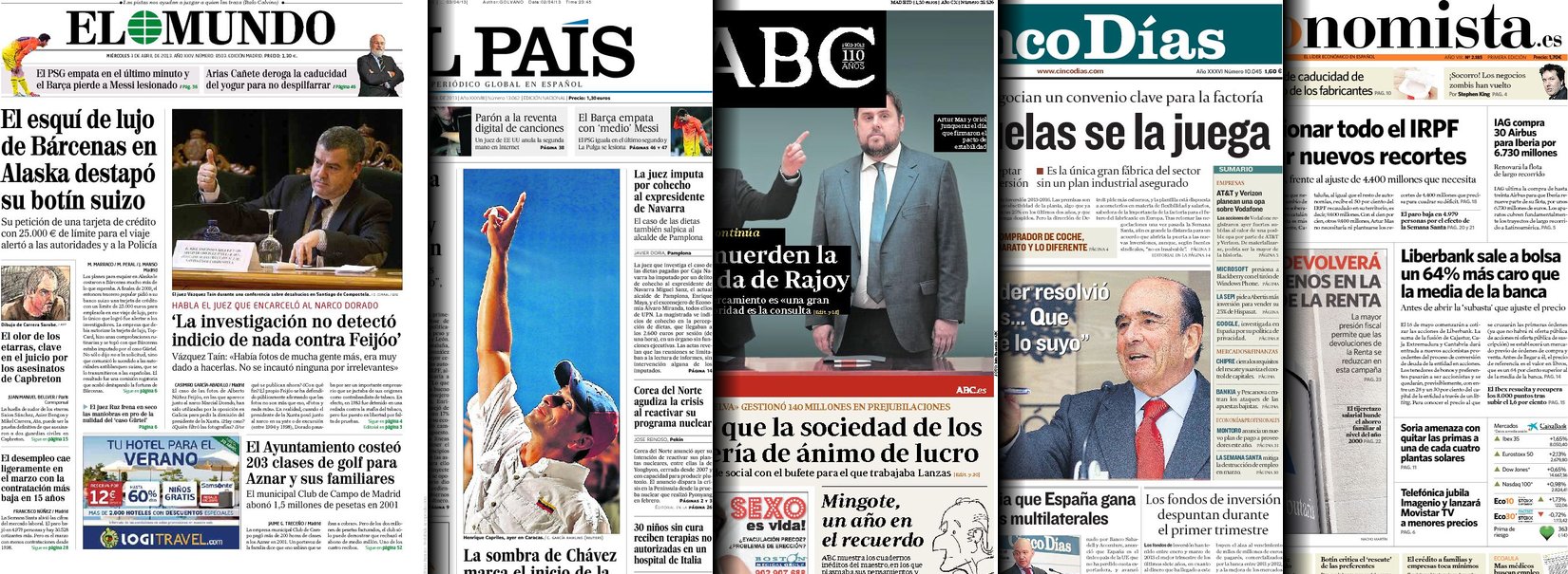 Portadas de los diarios El Mundo, El País, ABC, La Razón, La Vanguardia, La Gaceta, El Periódico, Cinco Días, El Economista, Expansión, Marca, As, Mundo Deportivo y Sport.