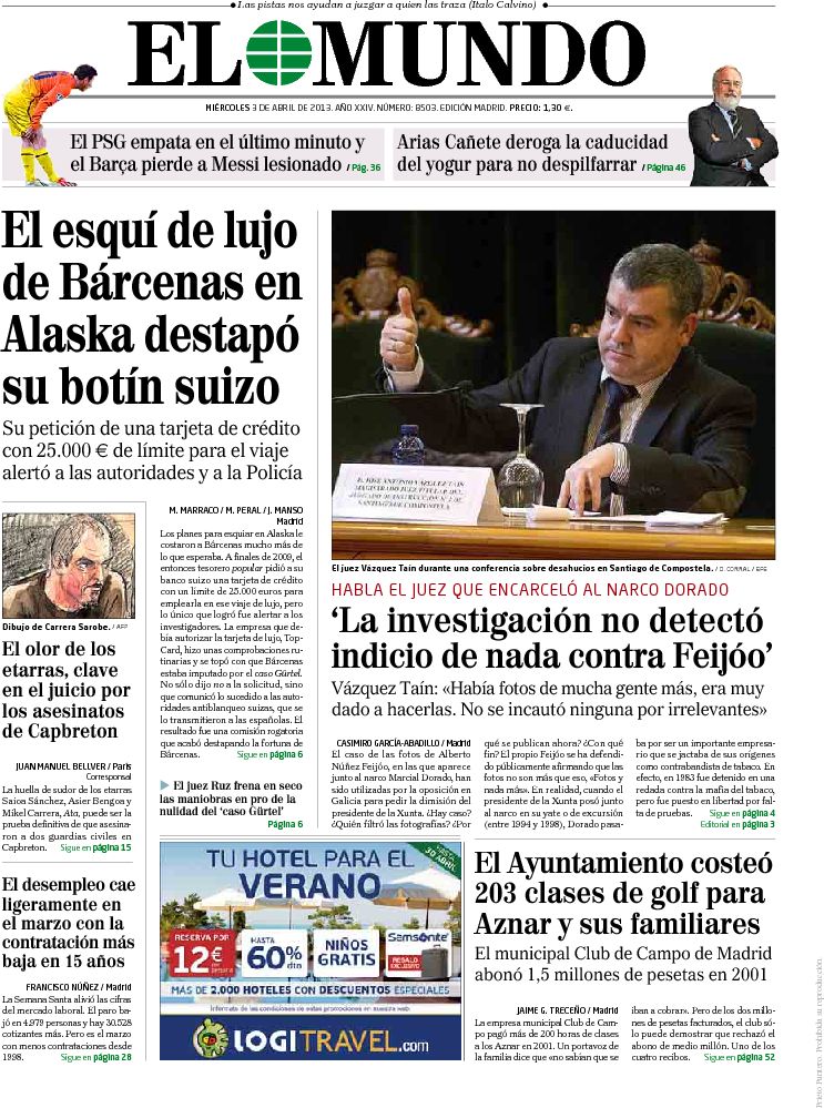 "El esquí de lujo de Bárcenas en Alaska destapó su botín suizo"