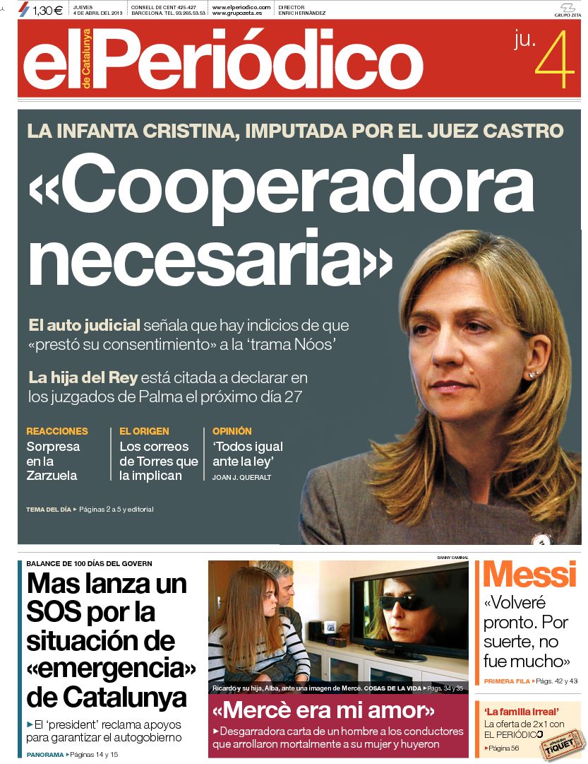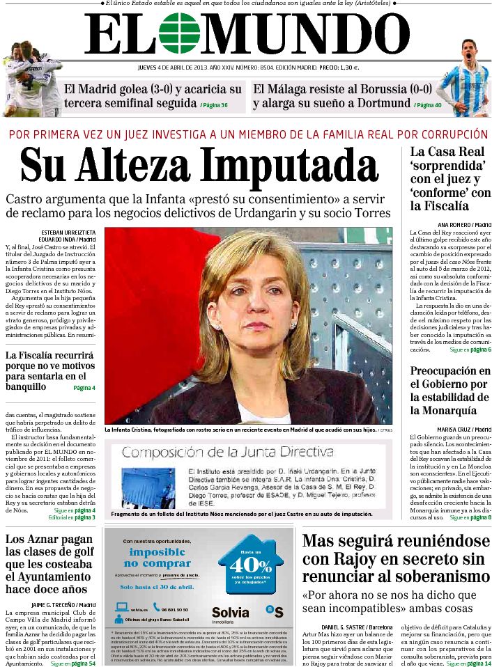 "El juez imputa a la infanta Cristina en el caso Nóos"