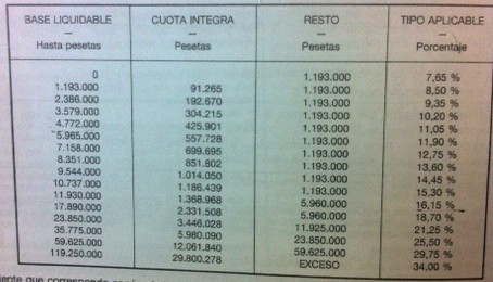 (Cuadro con las tarifas vigentes en 1993 para el impuesto de sucesiones en la Comunidad de Madrid)