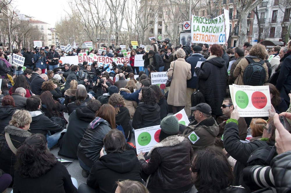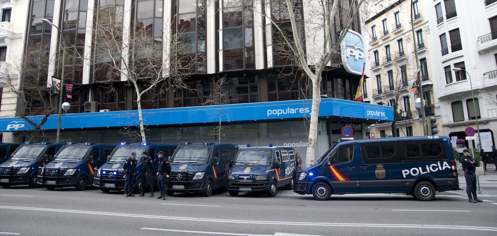 Sólo 200 personas han secundado el llamamiento de la plataforma antidesahucios para dirigirse a la sede del PP en Génova.