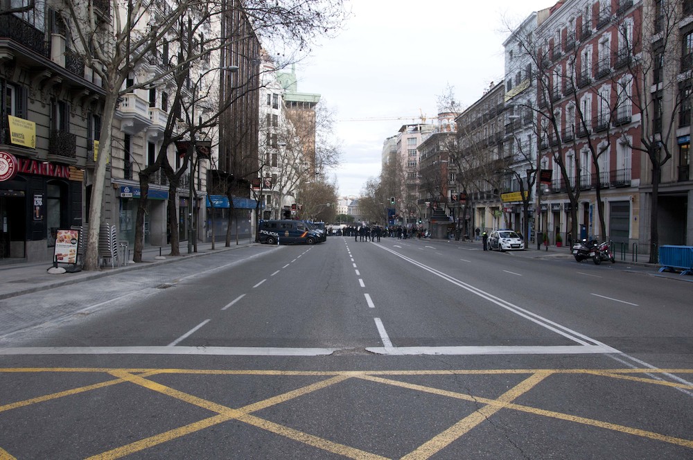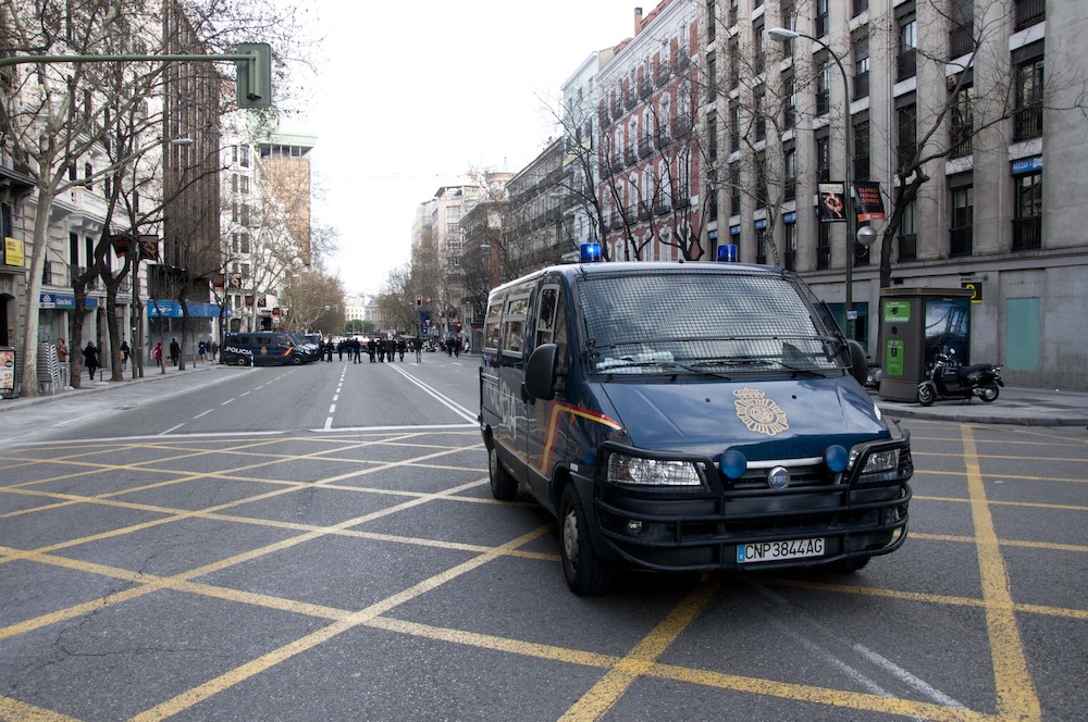 La Policía cortó el tráfico en la calle Génova, entre la plaza de Alonso Martínez y Colón