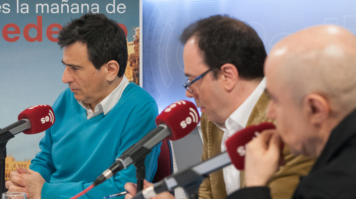Espada, escucha una pregunta pensativo junto a José García Domínguez y Gabriel Albiac