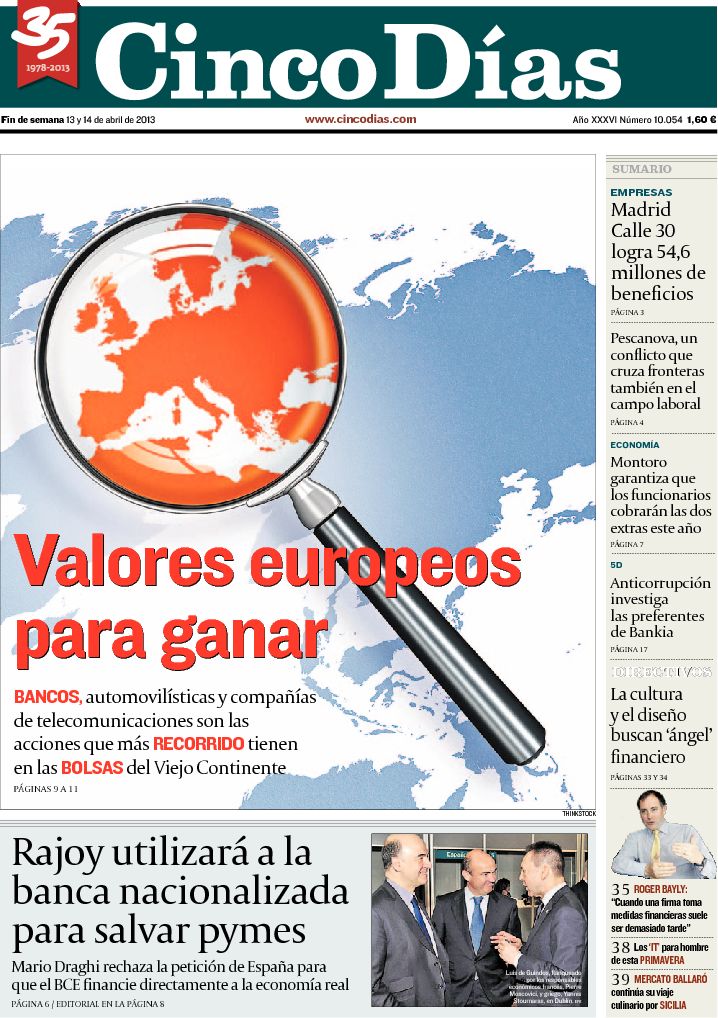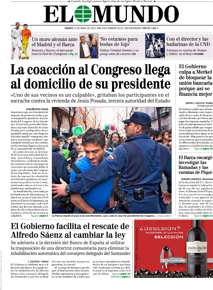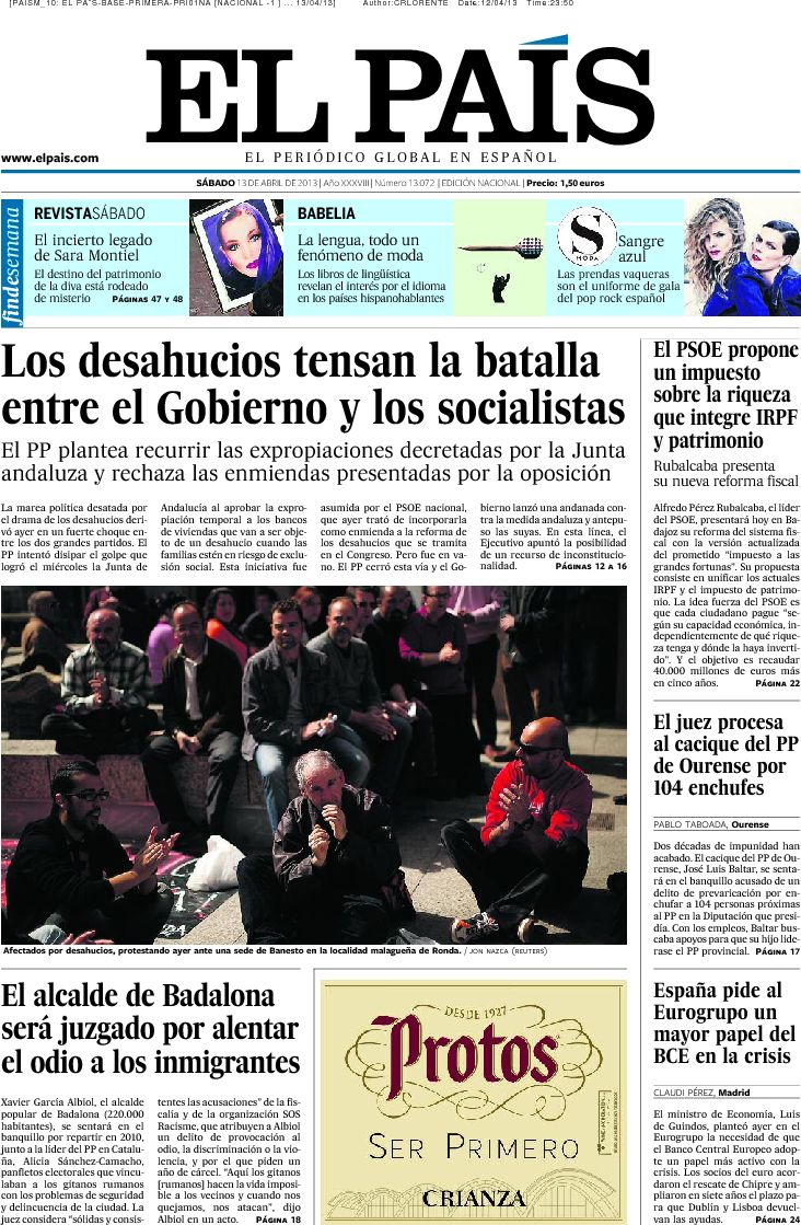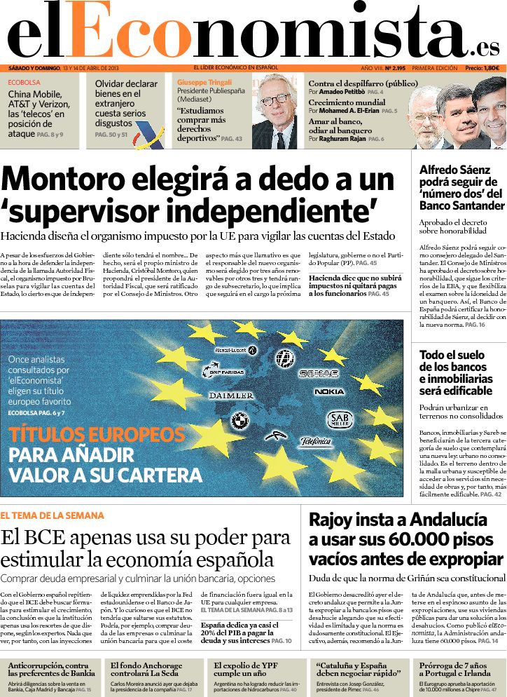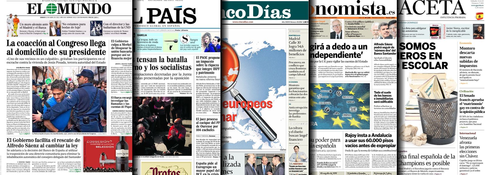 Portadas de los diarios El País, La Gaceta, ABC, Cinco Días, El Economista, As y La Vanguardia.