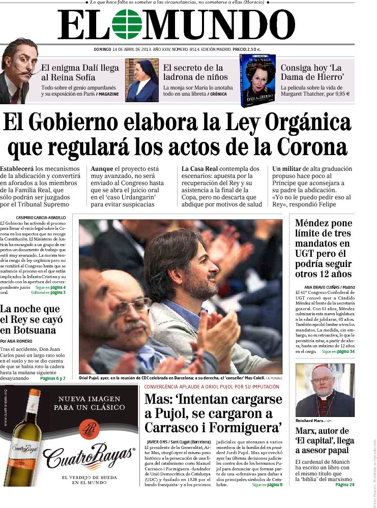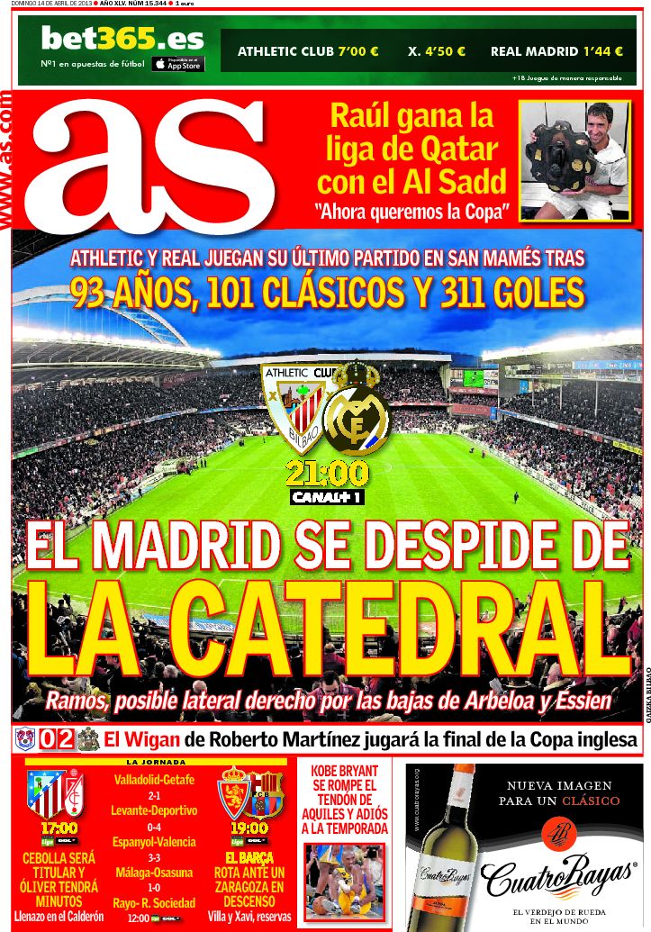 Portadas de los diarios El País, ABC, El Periódico, As y La Vanguardia.