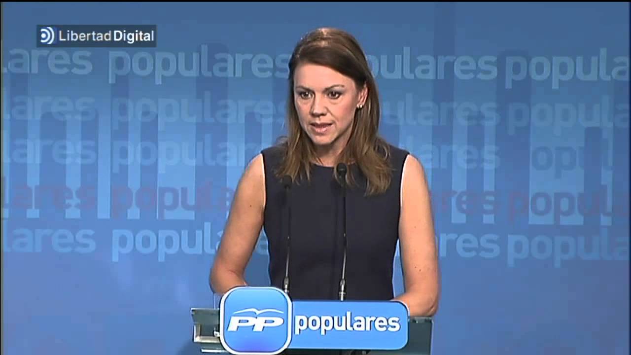María Dolores de Cospedal: "Y si algún día tenemos algo grave que lamentar habrá que mirar a los responsables de provocar la violencia que se está provocando. Por lo tanto nuestra más absoluta condena y repulsa por los actos de agresión y de violencia contra las sedes y contra las personas que integran el Partido Popular. Me parece que ir a casa de alguien, señalarlo, decirle se donde vives y ejercer violencia física o verbal contra él o ella, o las personas que están dentro de esa casa es un acto de totalitarismo, de nazismo y de fascismo. Como usted lo quiera llamar. Por lo tanto me reafirmo. Y vuelvo a decir la violencia sólo genera violencia, y se volverá contra aquellos que la están ejerciendo".