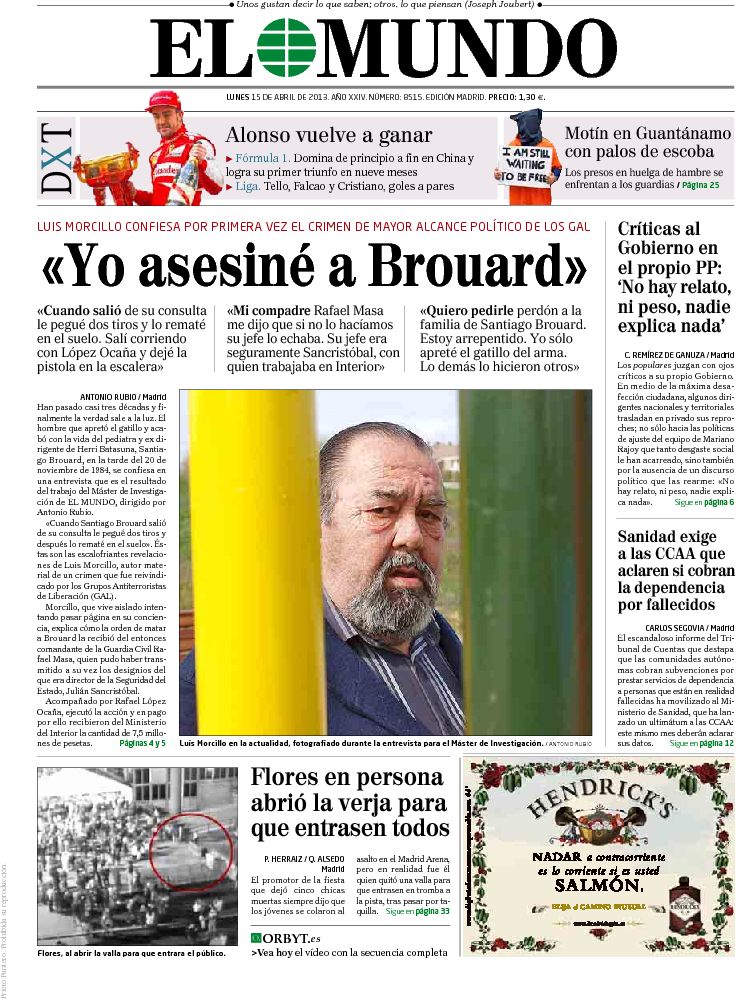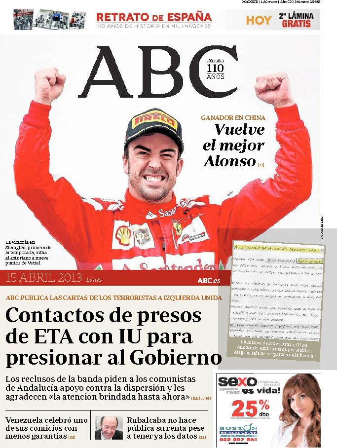 "Contactos de presos de ETA con IU para presionar al Gobierno"; "Vuelve el mejor Alonso"