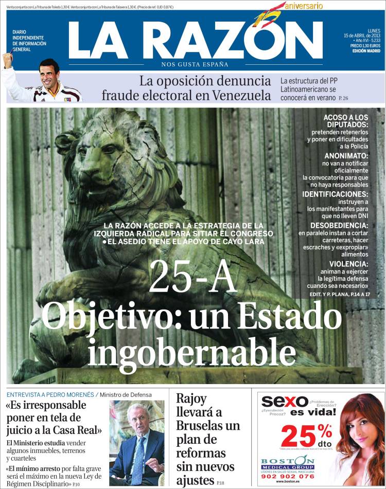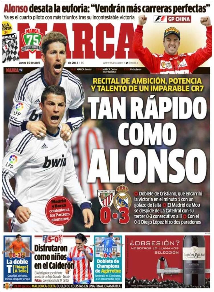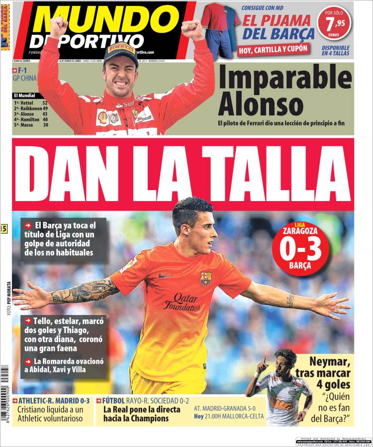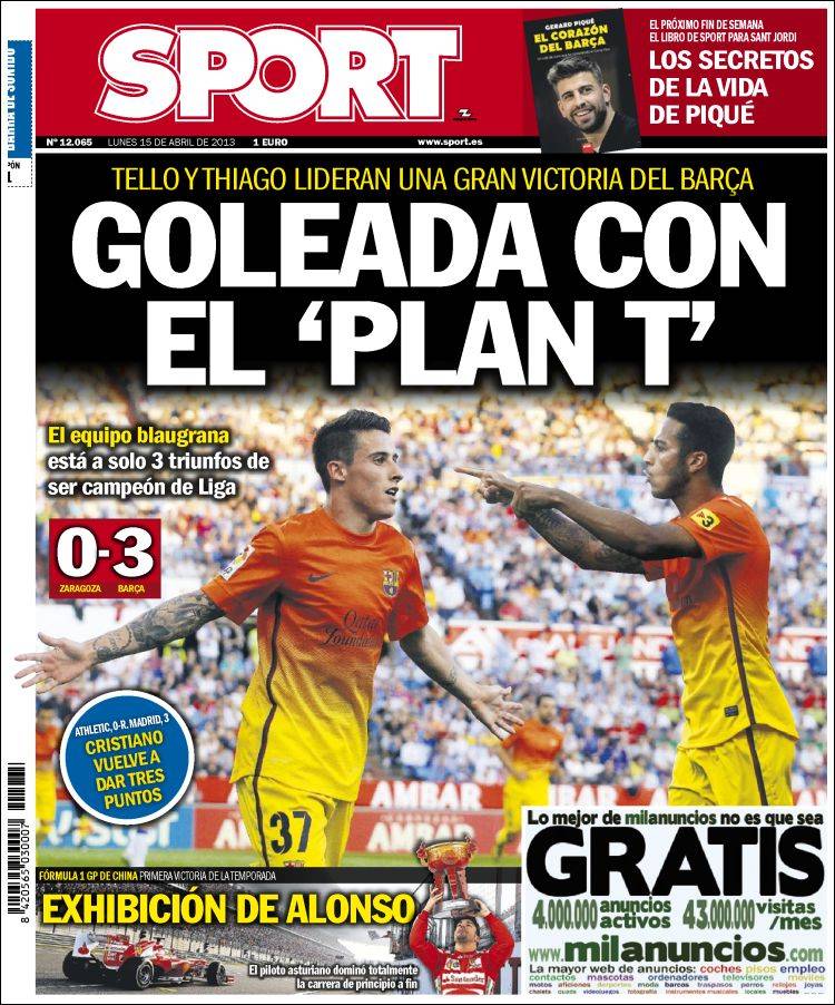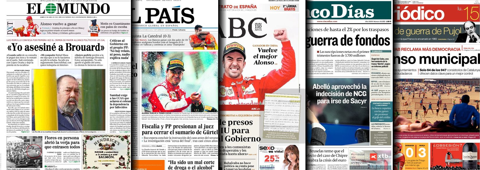 Portadas de los diarios El Mundo, El País, ABC, La Razón, La Vanguardia, La Gaceta, El Periódico, Cinco Días, El Economista, Expansión, Marca, As, Mundo Deportivo y Sport.