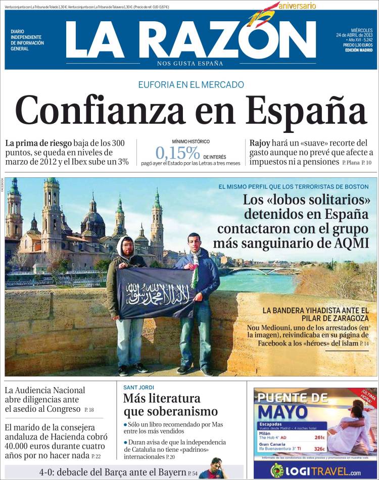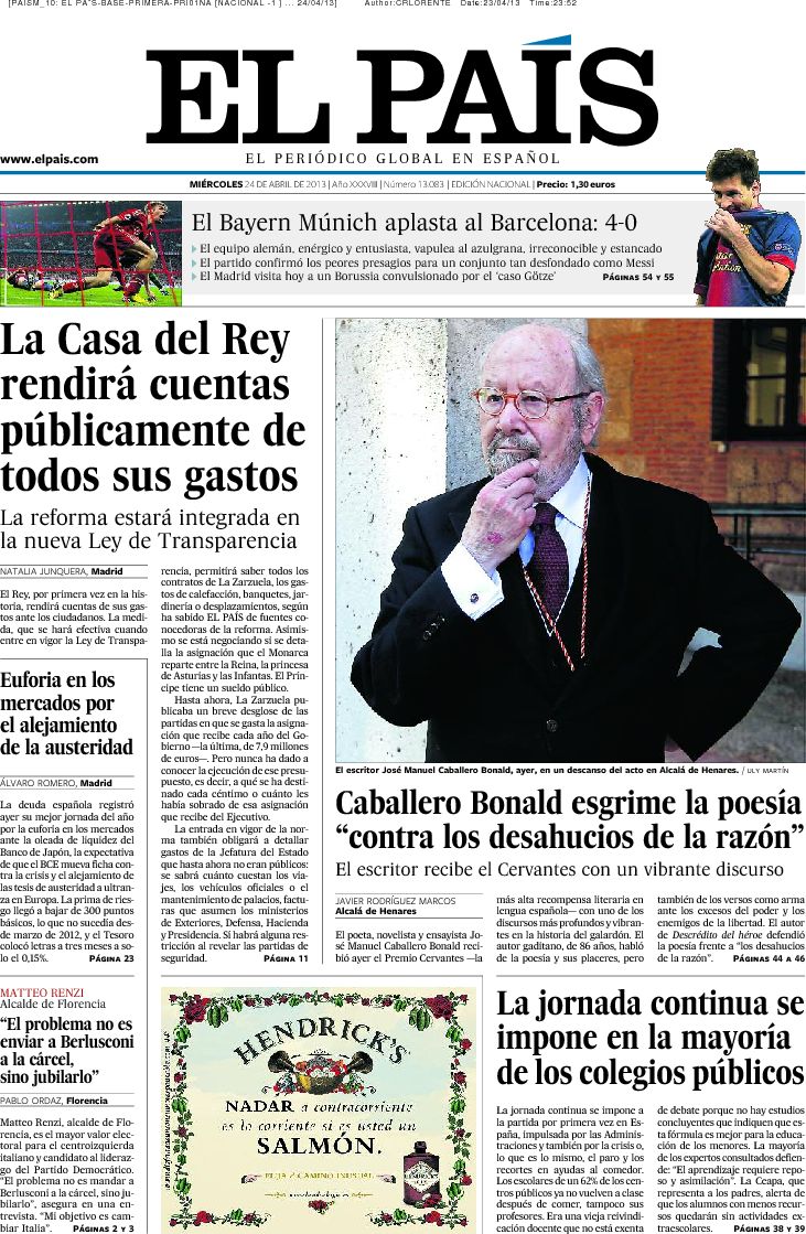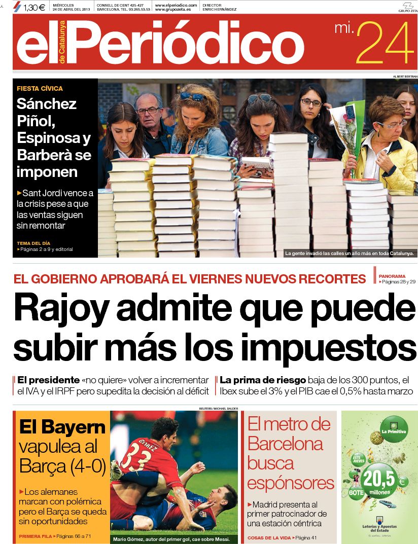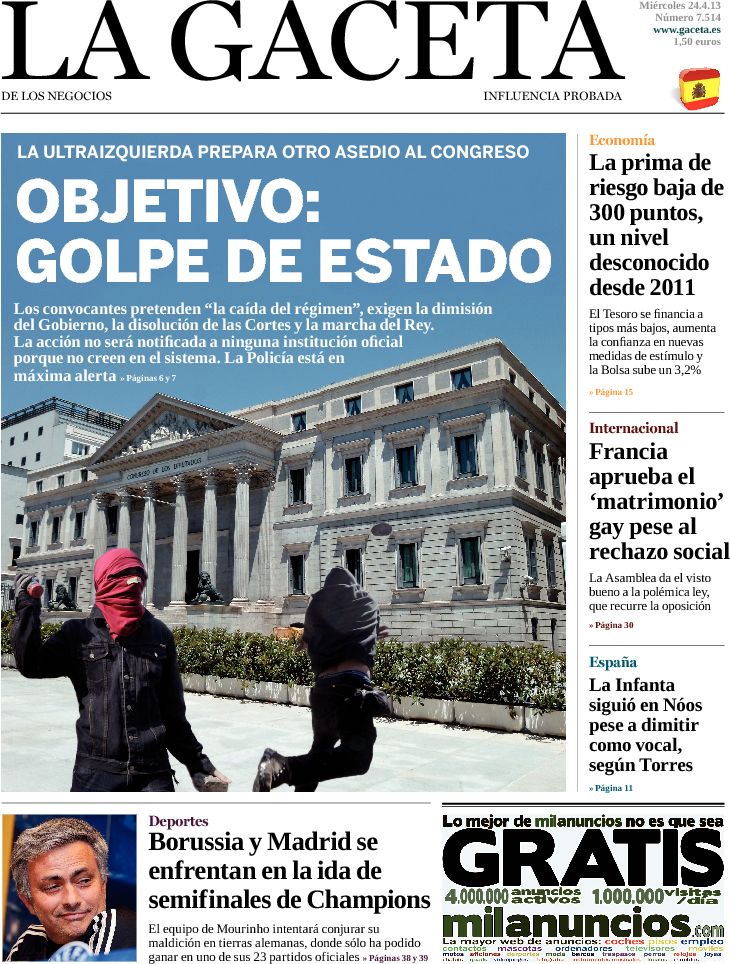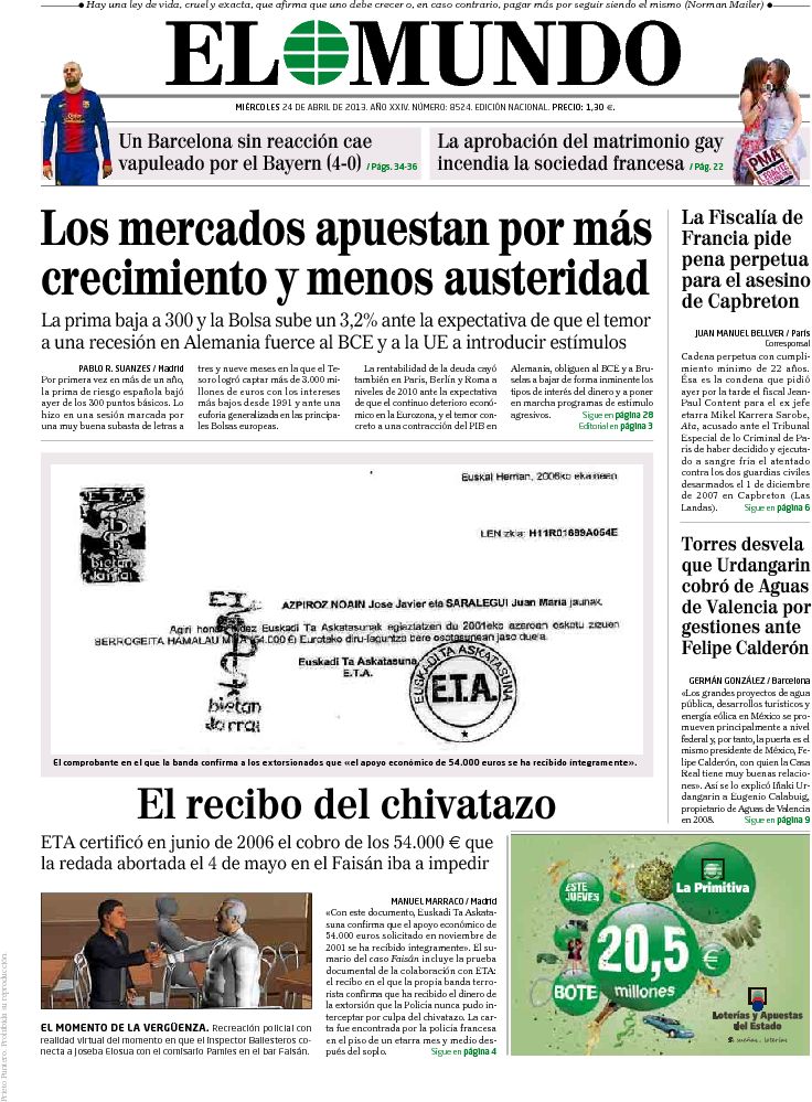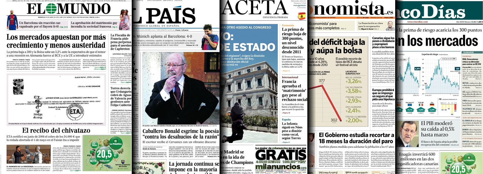 Portadas de los diarios El Mundo, El País, ABC, La Razón, La Vanguardia, La Gaceta, El Periódico, Cinco Días, El Economista, Expansión, Marca, As, Mundo Deportivo y Sport.