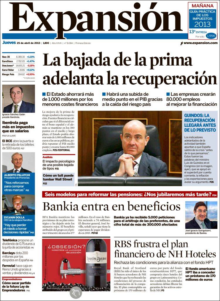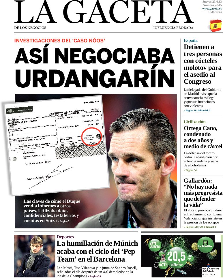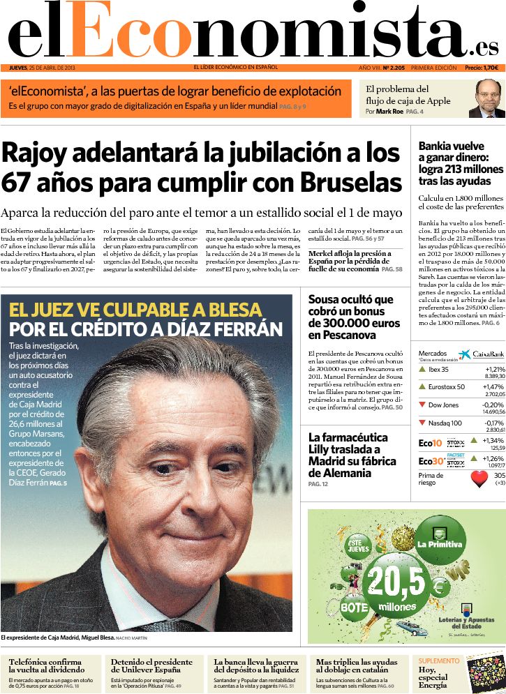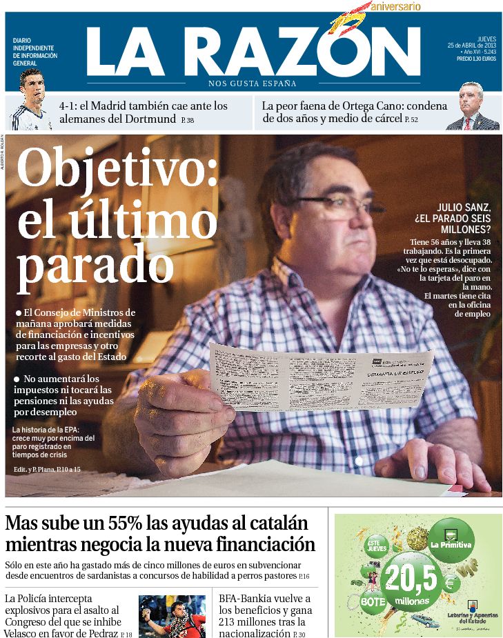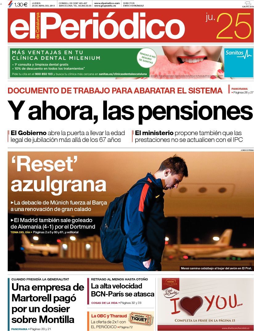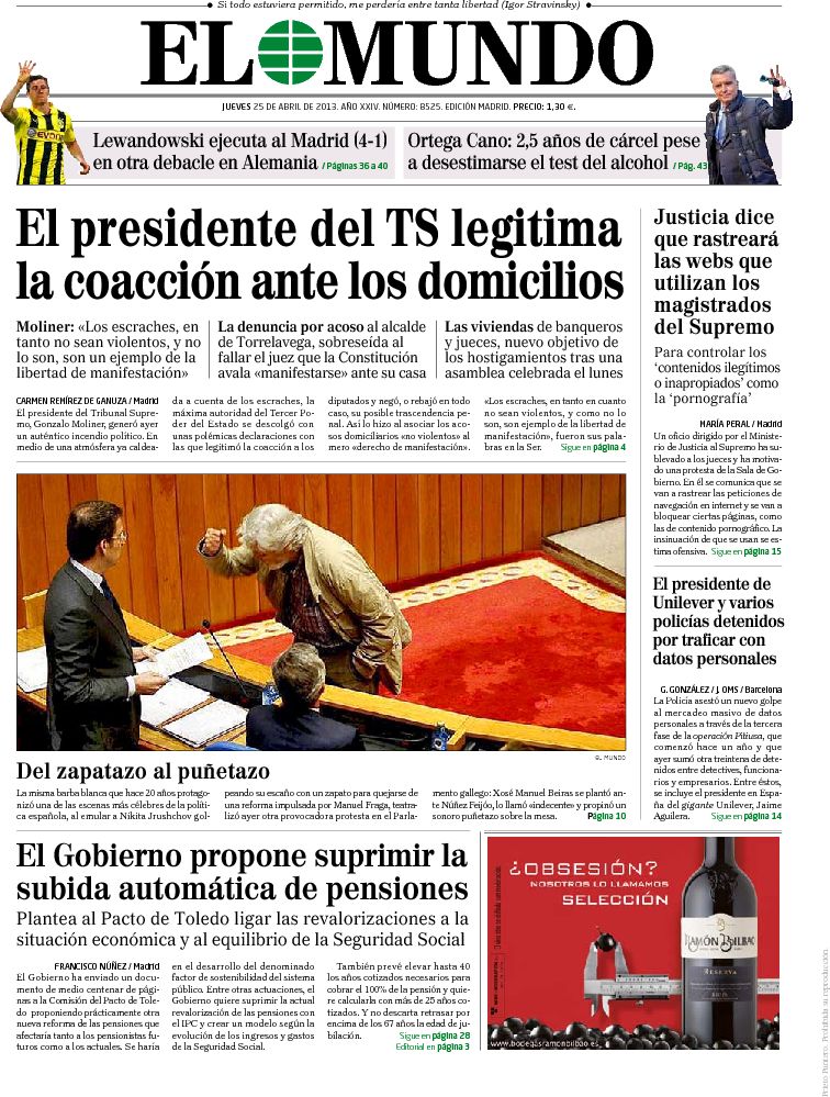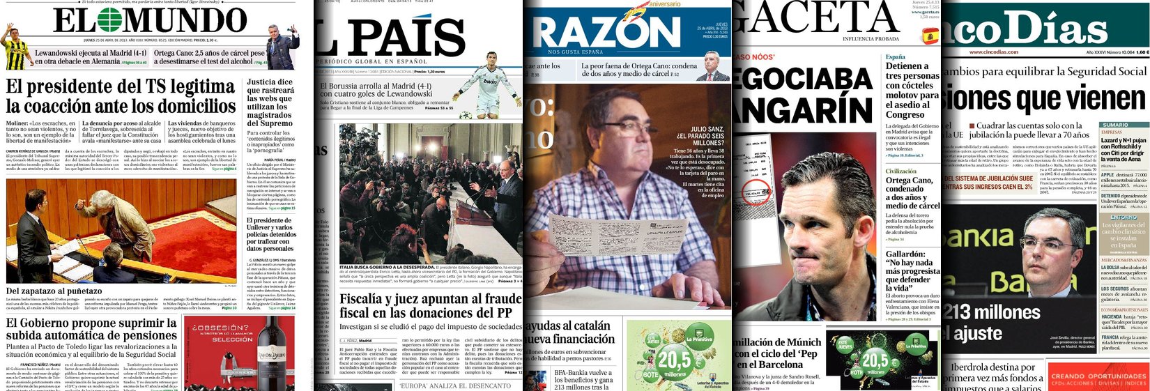 Portadas de los diarios El Mundo, El País, ABC, La Razón, La Vanguardia, La Gaceta, El Periódico, Cinco Días, El Economista, Expansión, Marca, As, Mundo Deportivo y Sport.