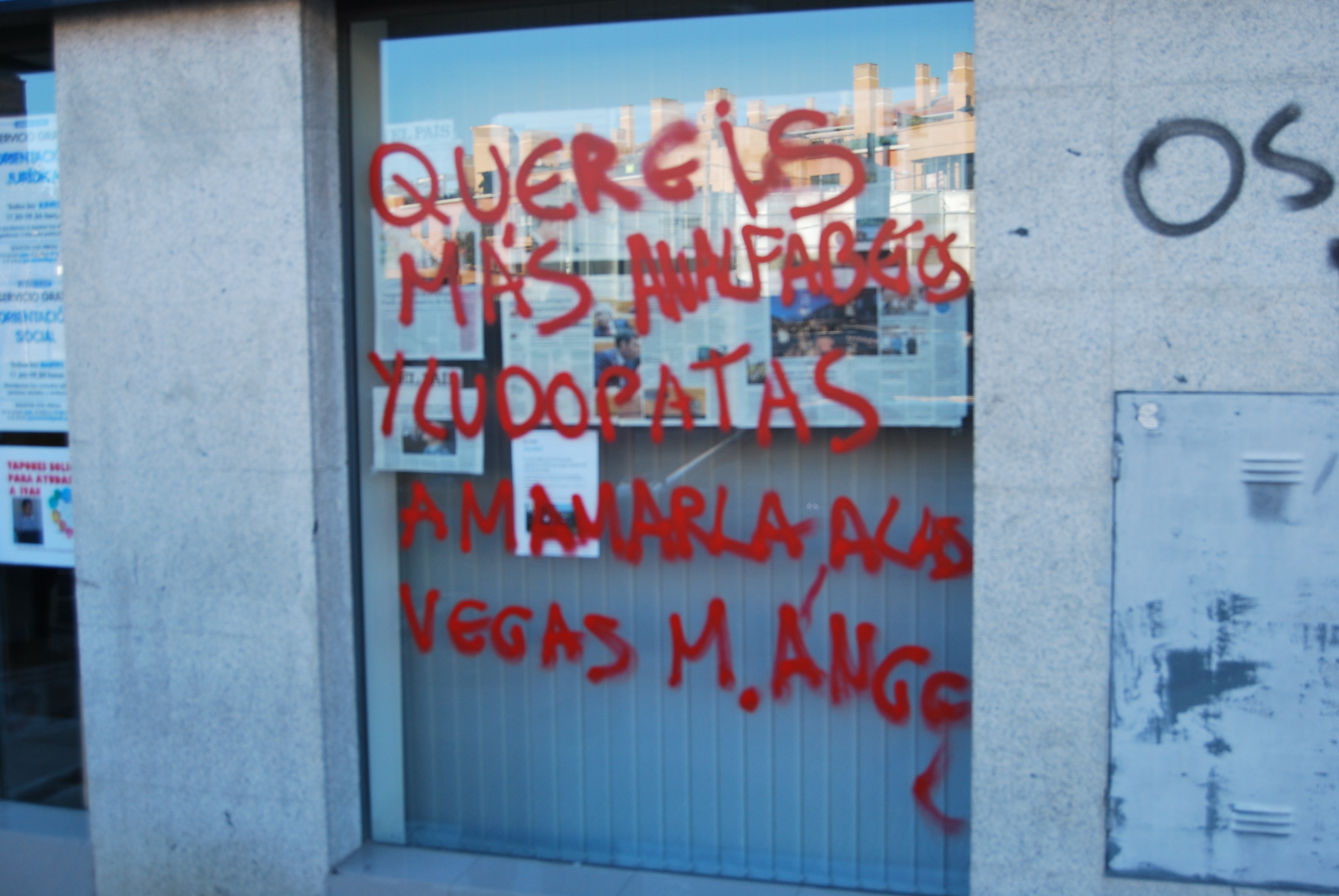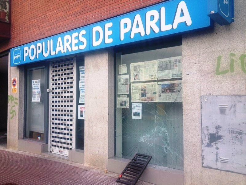 El último ataque producido esta madrugada ha dejado la luna de la sede completamente destrozada