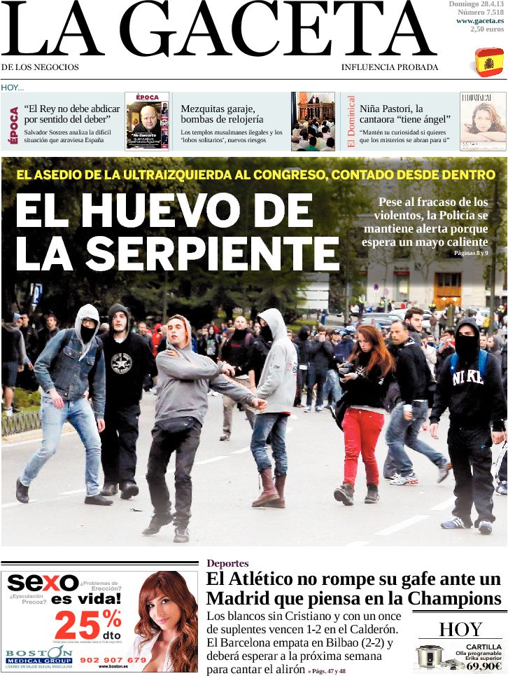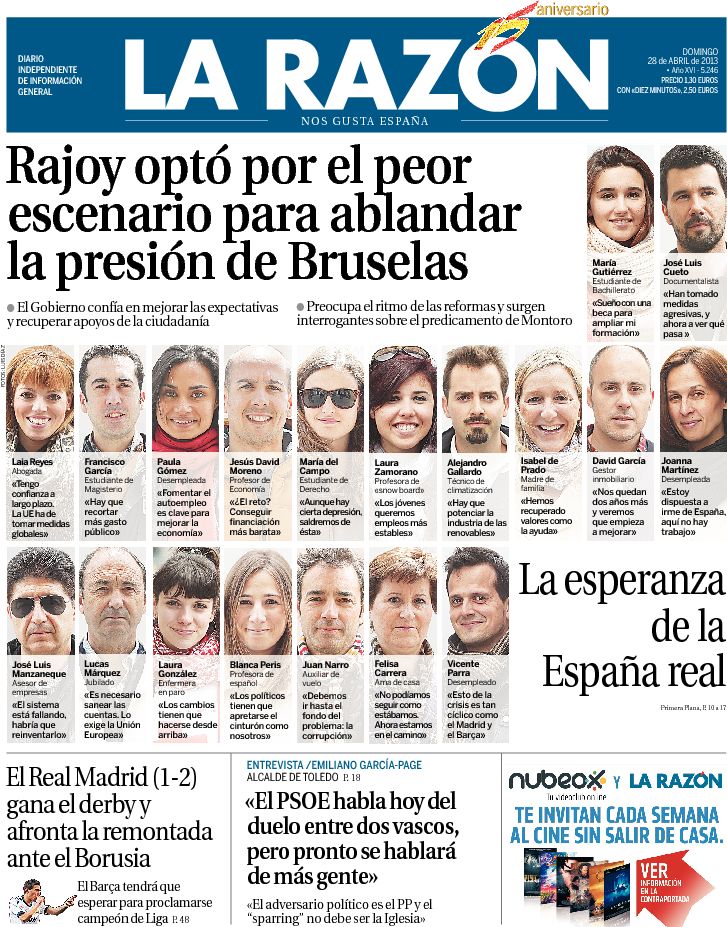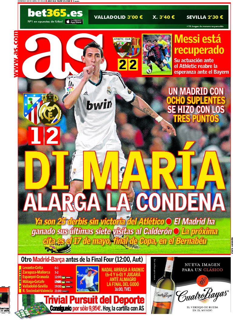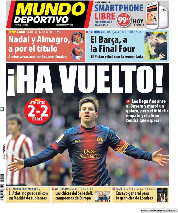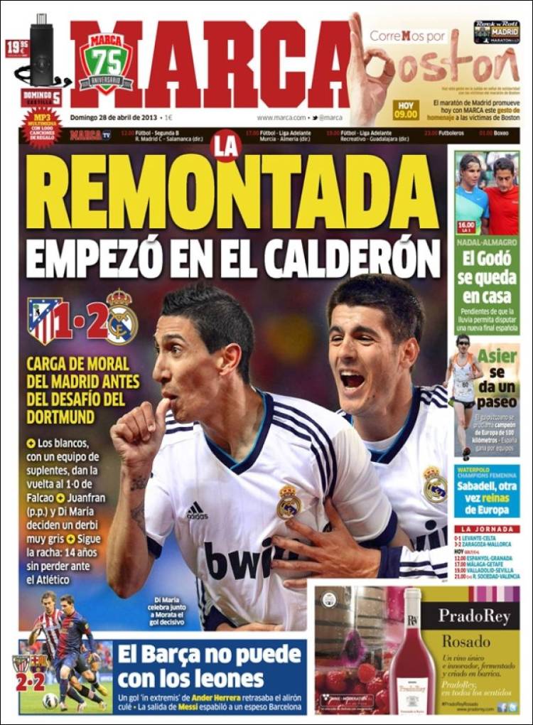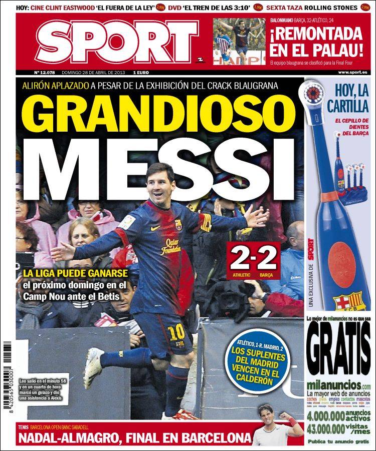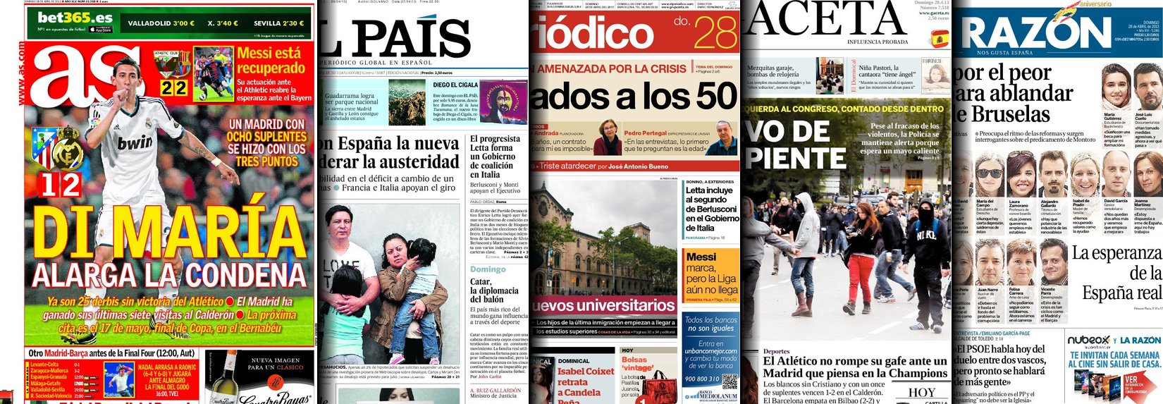 Portadas de los diarios El Mundo, El País, ABC, La Razón, La Gaceta, La Vanguardia, El Periódico, Marca, As, Mundo Deportivo y Sport.