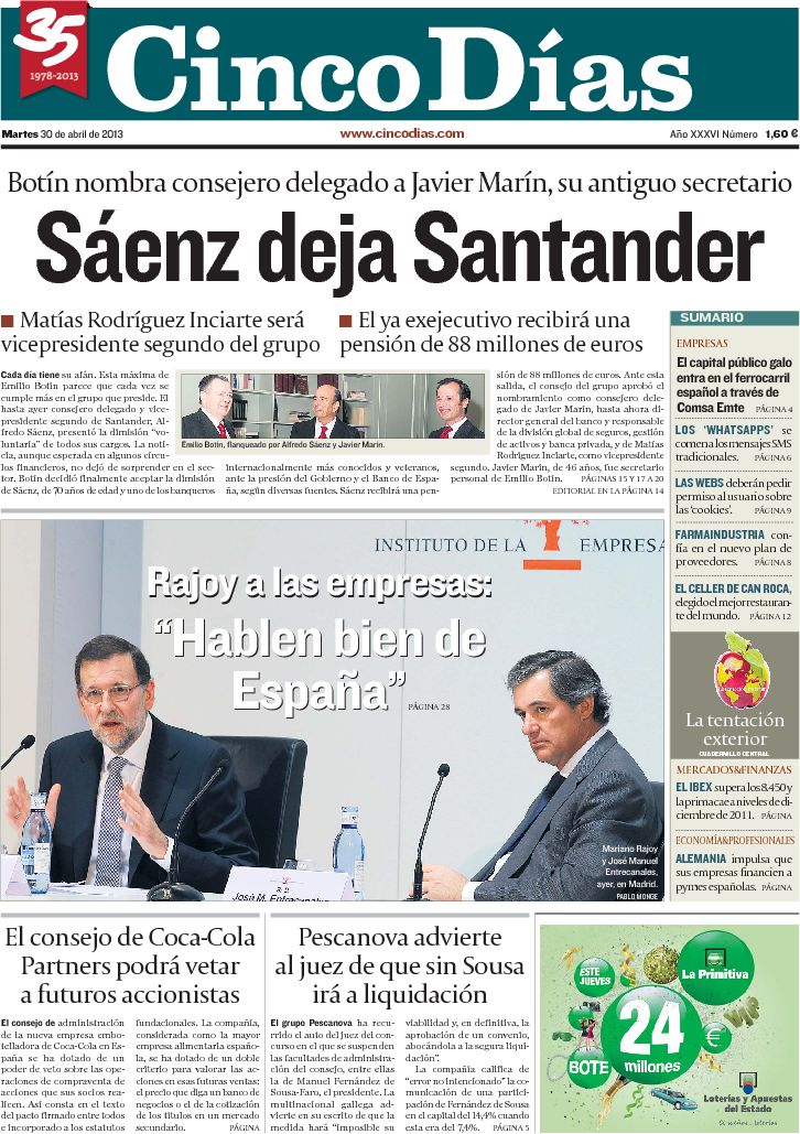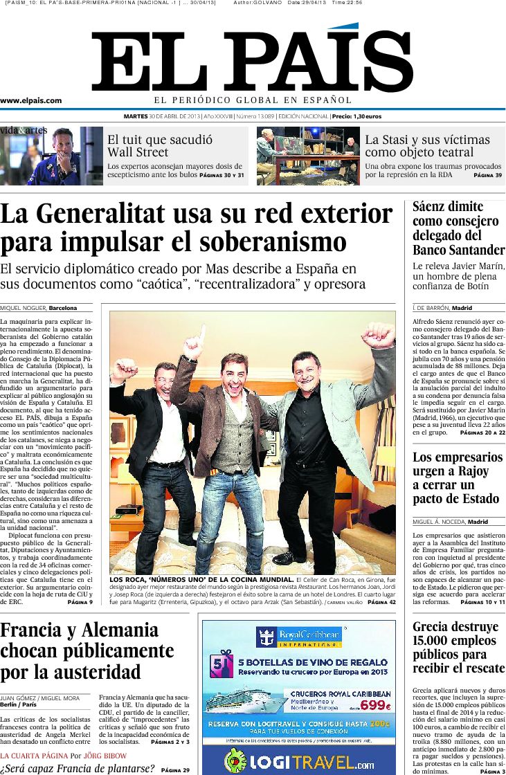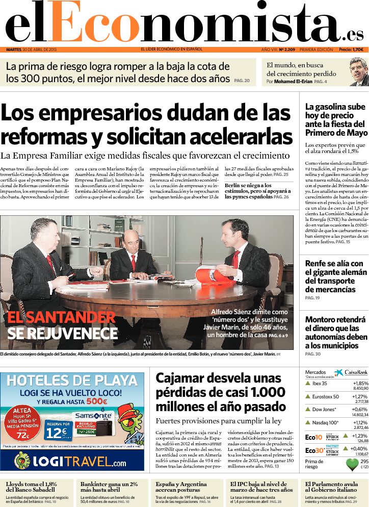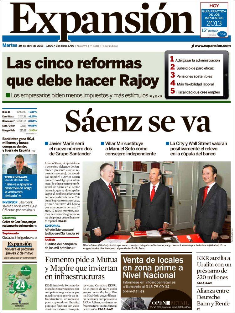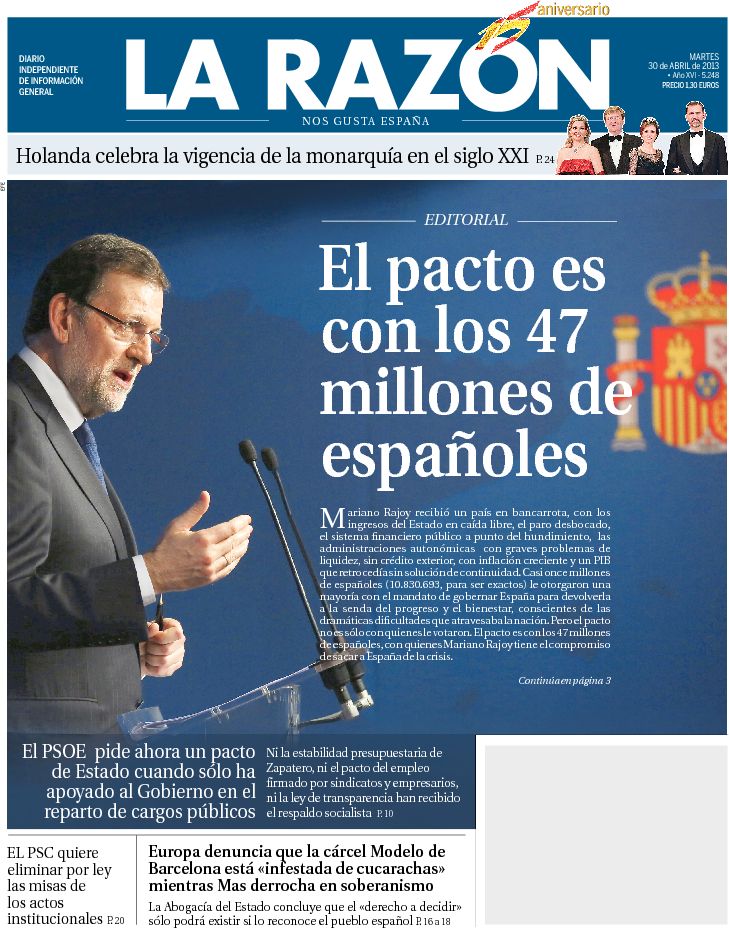 Portadas de los diarios El Mundo, El País, ABC, La Razón, La Vanguardia, La Gaceta, El Periódico, Cinco Días, El Economista, Expansión, Marca, As, Mundo Deportivo y Sport.