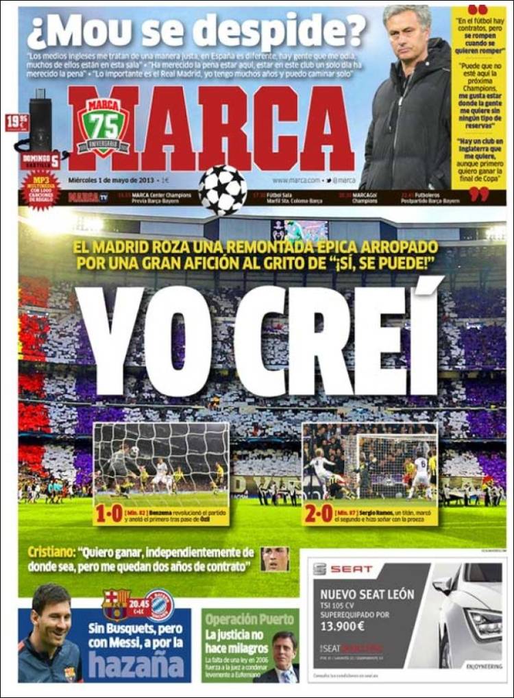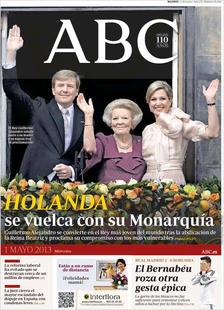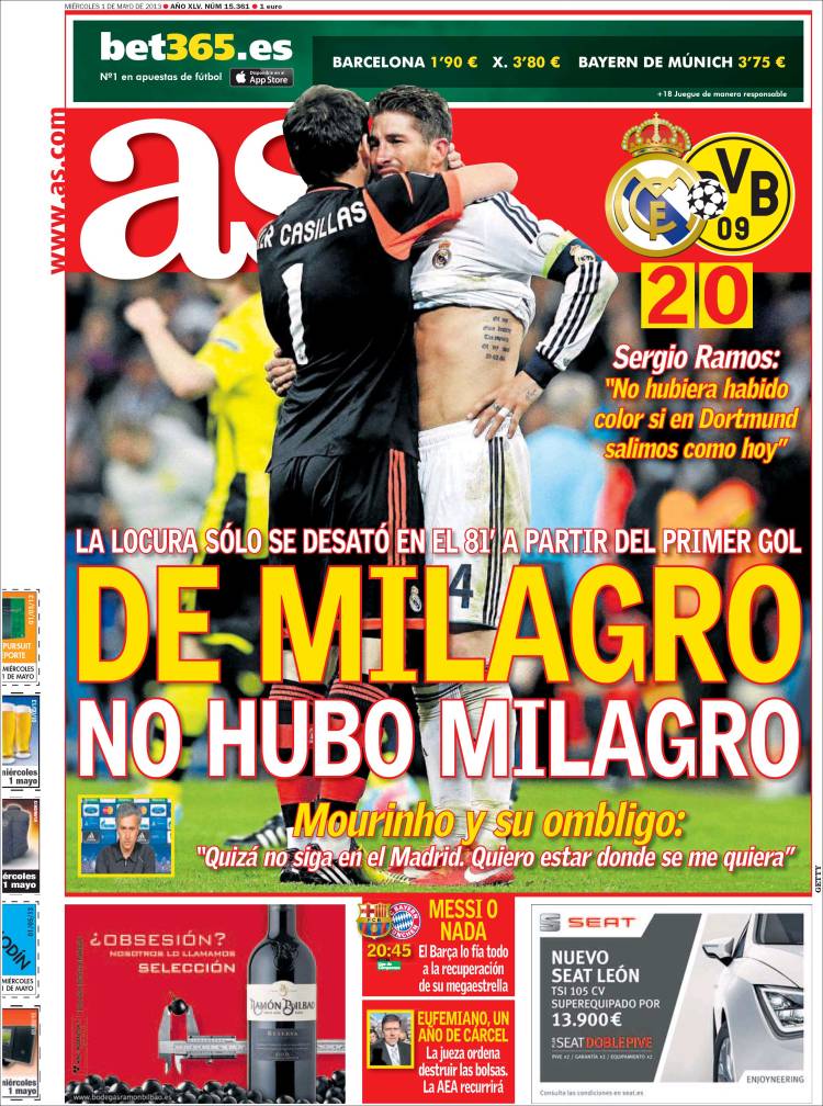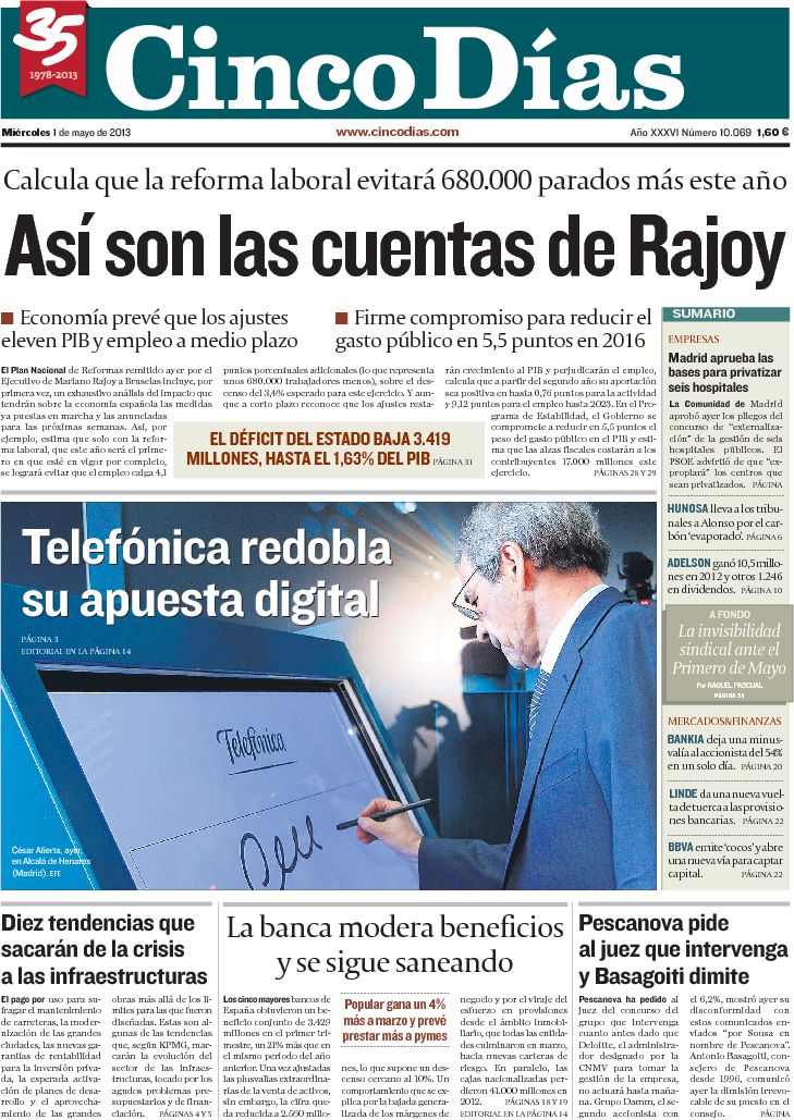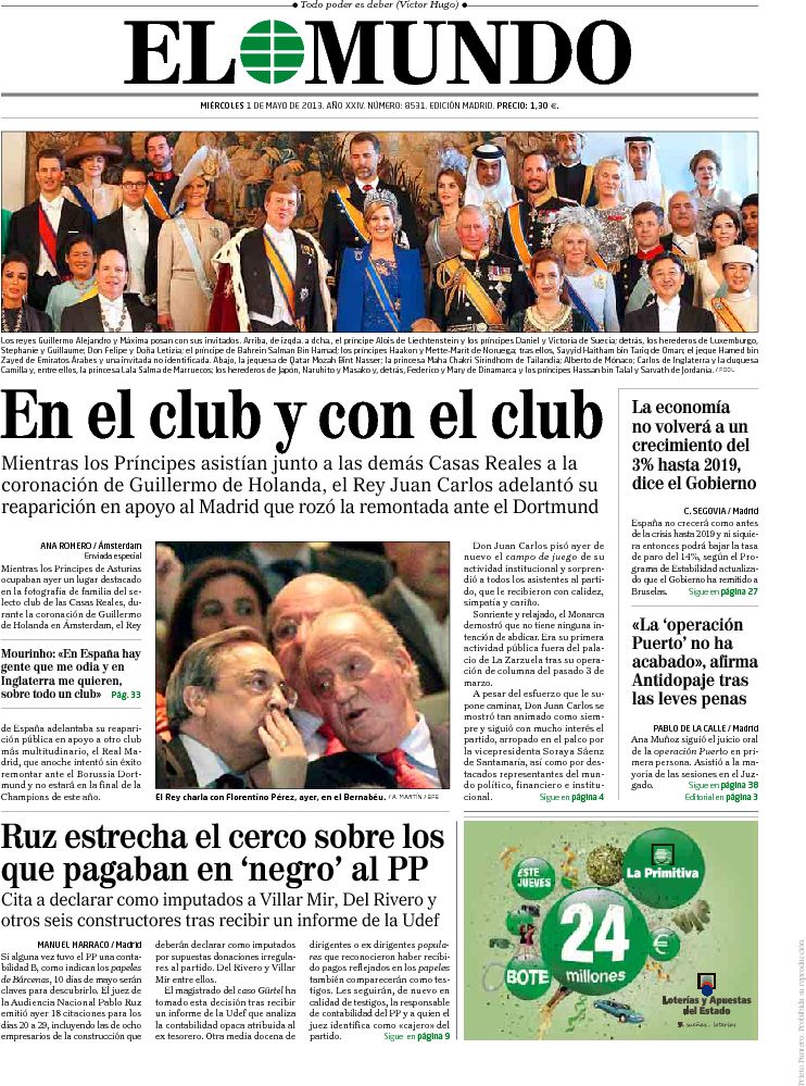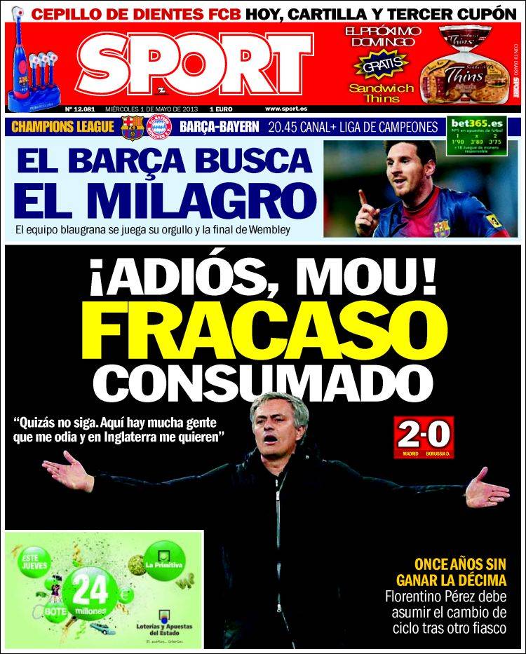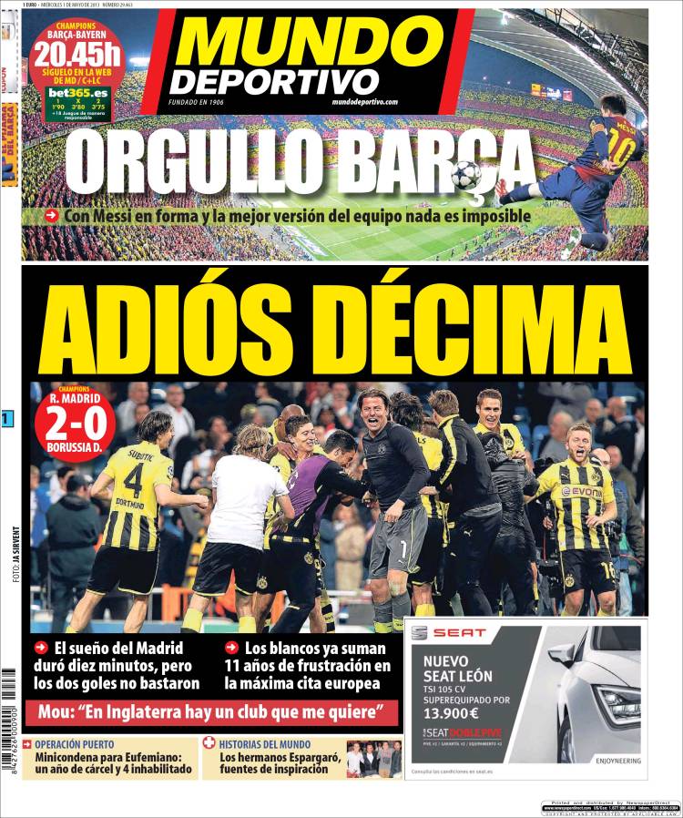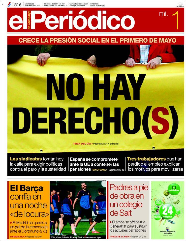 Portadas de los diarios El Mundo, El País, ABC, La razón, La Gaceta, La Vanguardia, El Periódico, el Economista, Cinco Días, As, Marca, Mundo Deportivo y Sport .