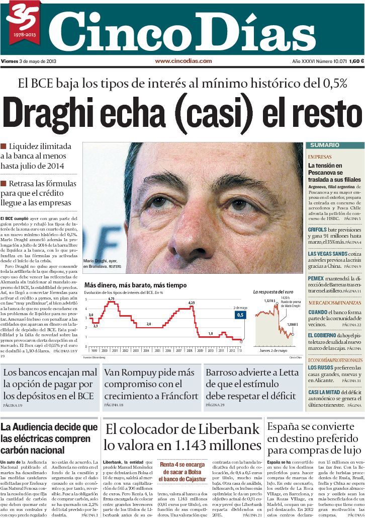 "Draghi baja tipos al 0,5% y quiere activar el crédito"