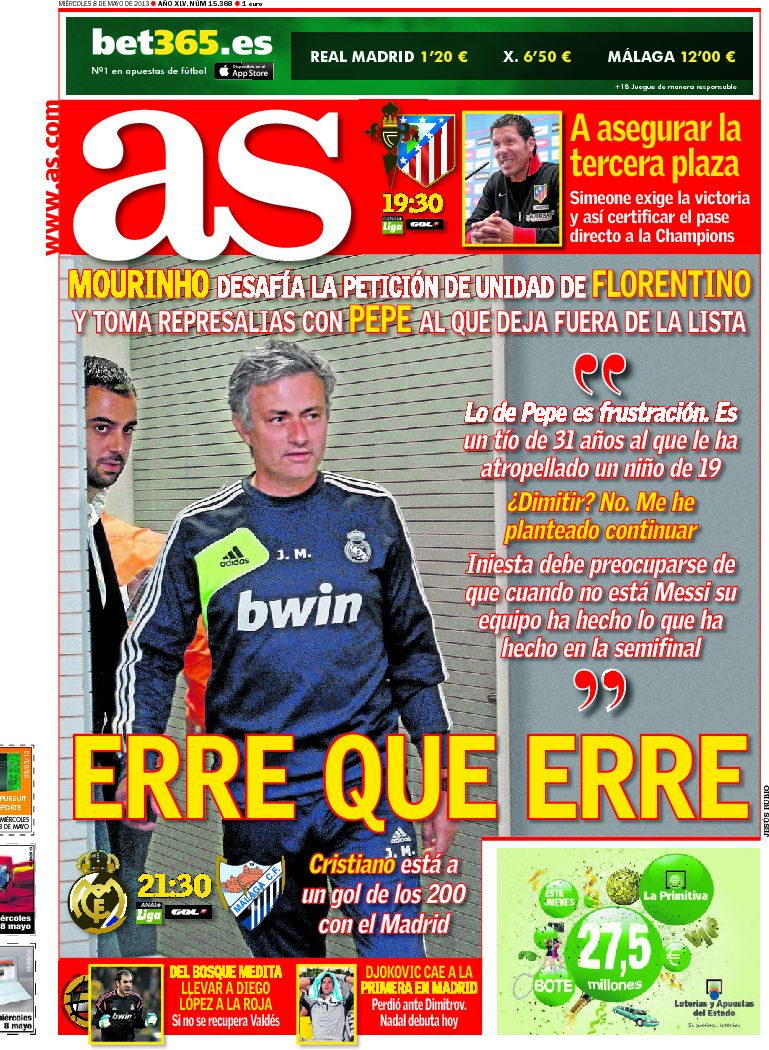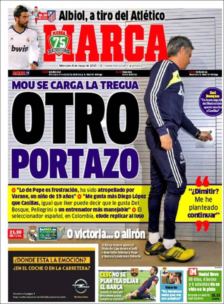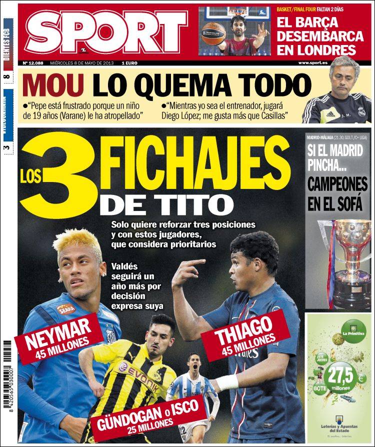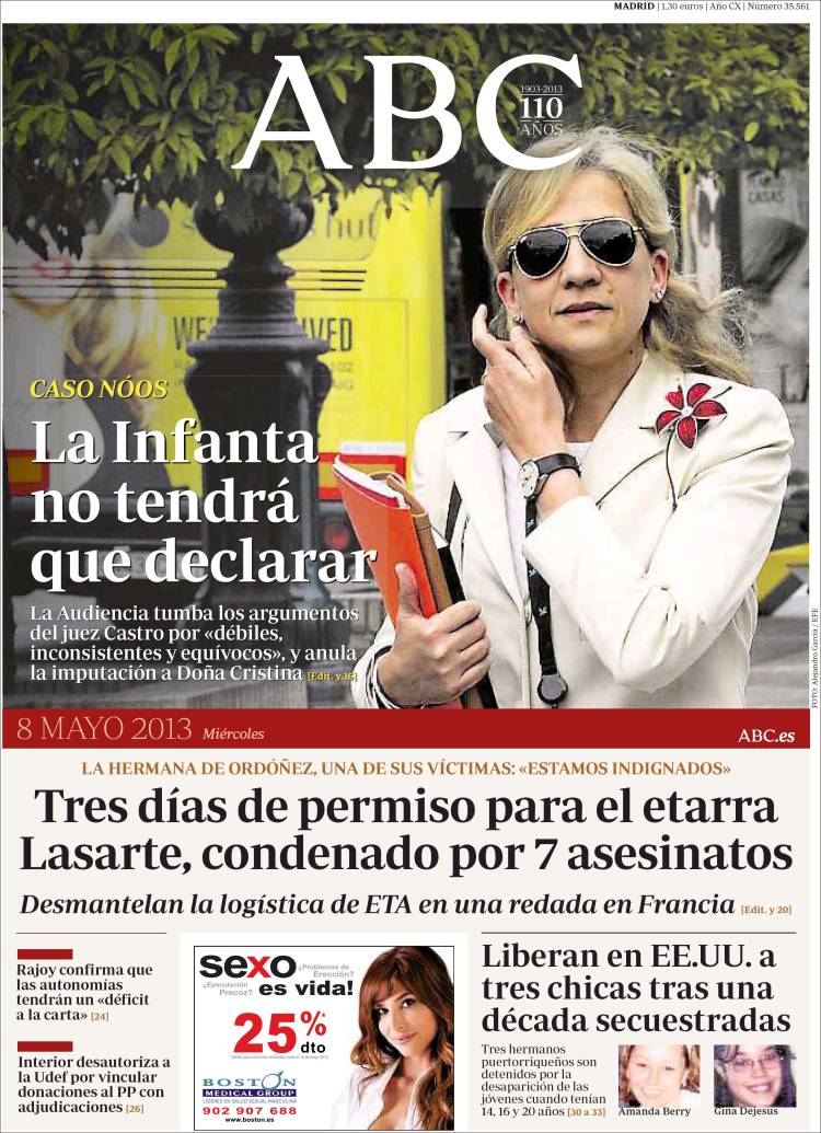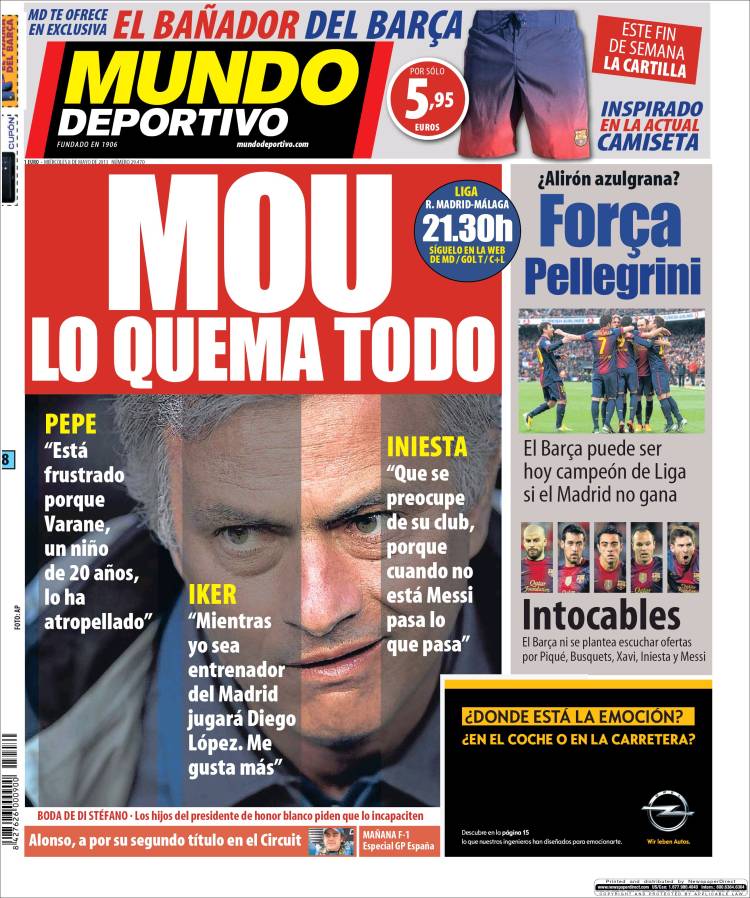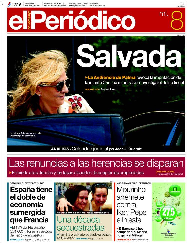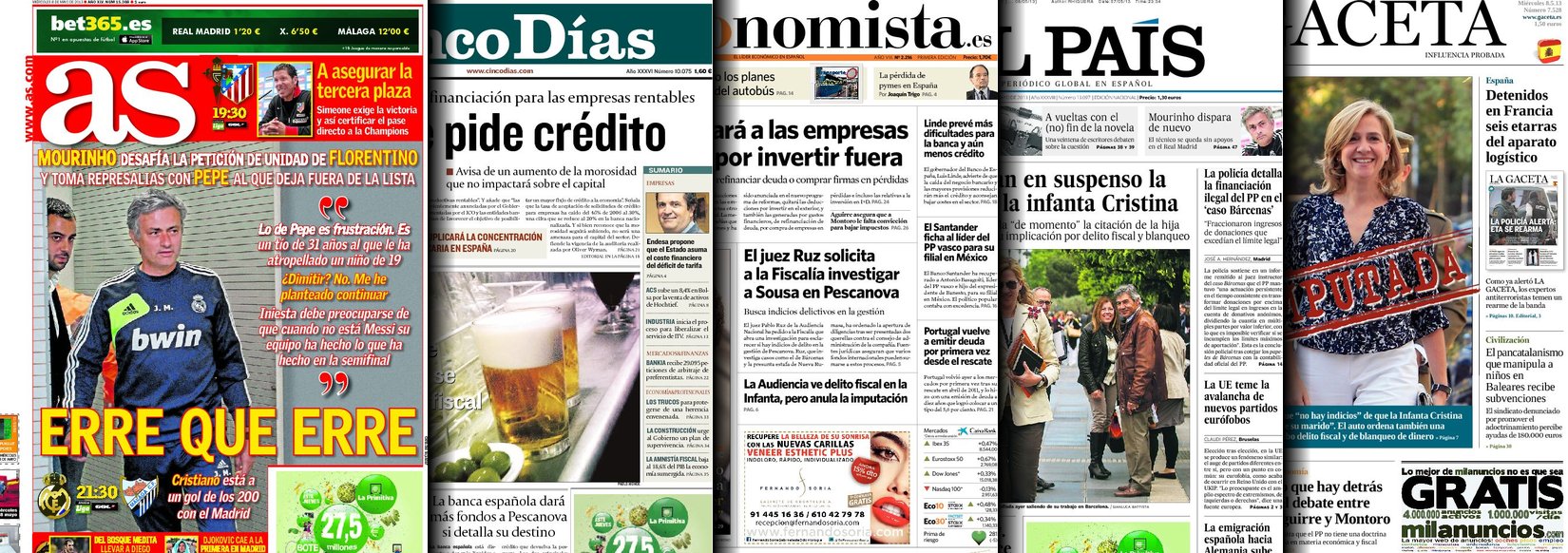 Portadas de los diarios El Mundo, El País, ABC, La Razón, La Vanguardia, La Gaceta, El Periódico, Cinco Días, El Economista, Expansión, Marca, As, Mundo Deportivo y Sport.