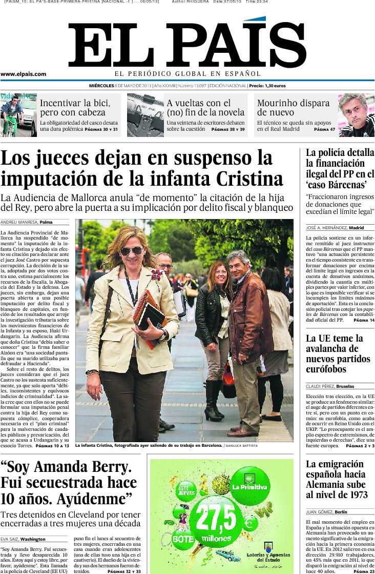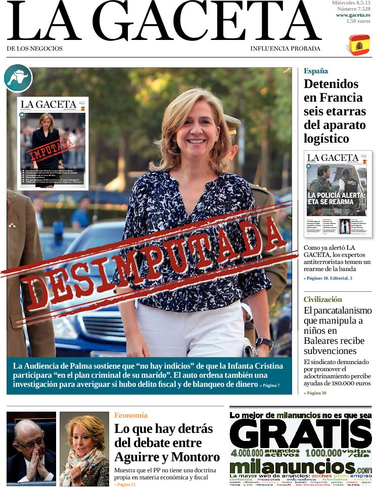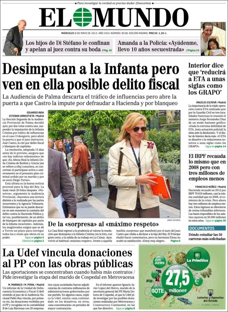 "Los jueces dejan en suspenso la imputación de la infanta Cristina"