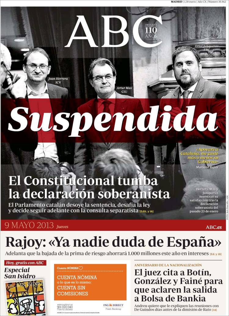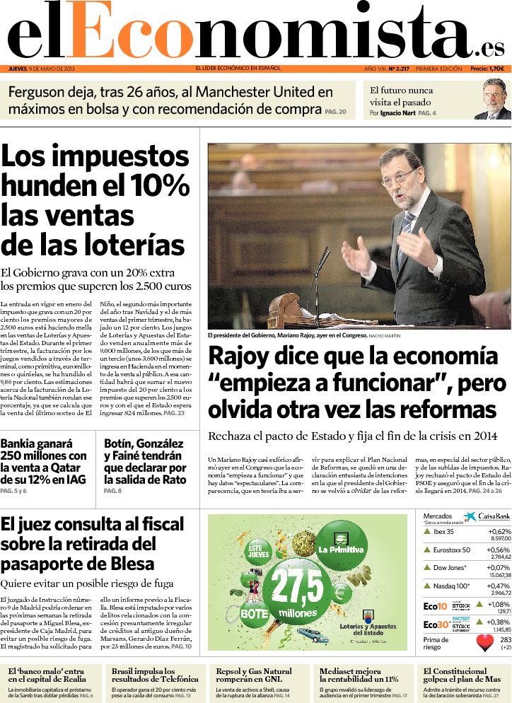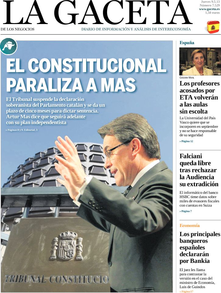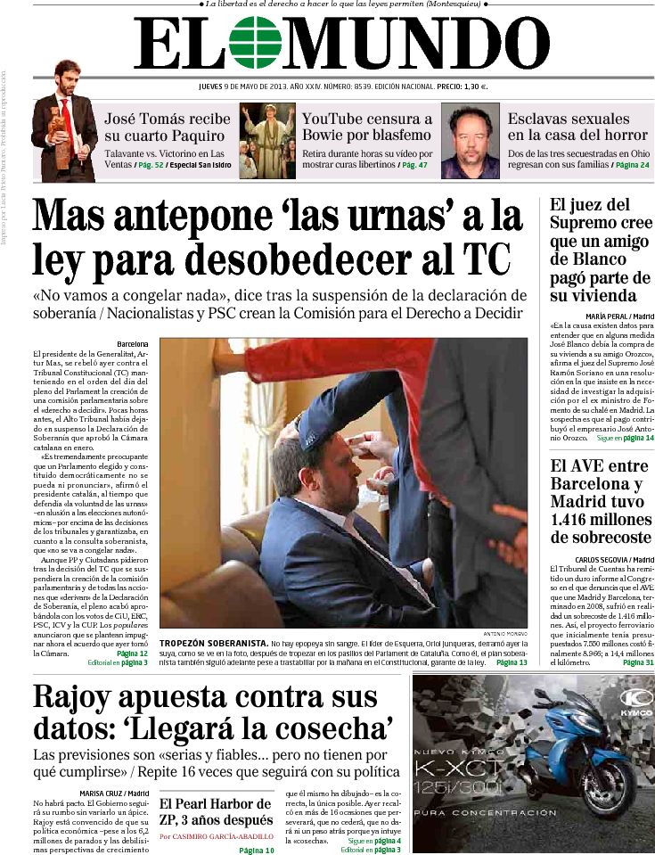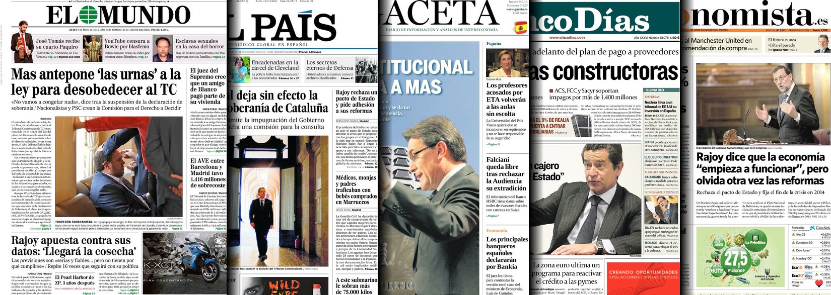 Portadas de los diarios El Mundo, El País, ABC, La Razón, La Vanguardia, La Gaceta, El Periódico, Cinco Días, El Economista, Expansión, Marca, As, Mundo Deportivo y Sport.