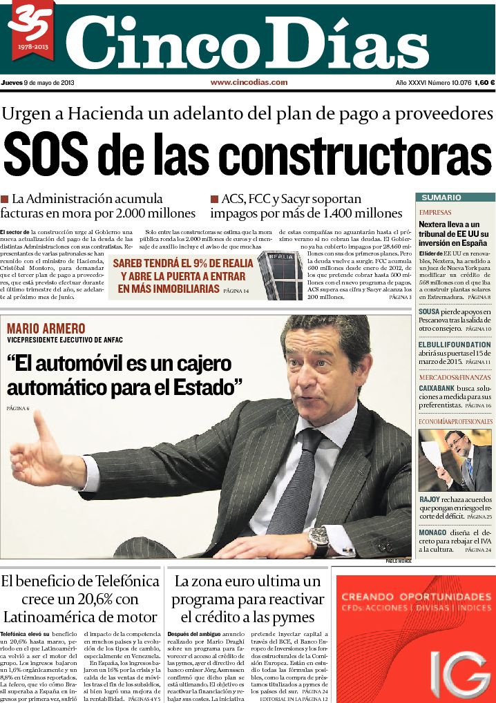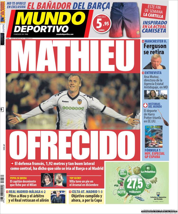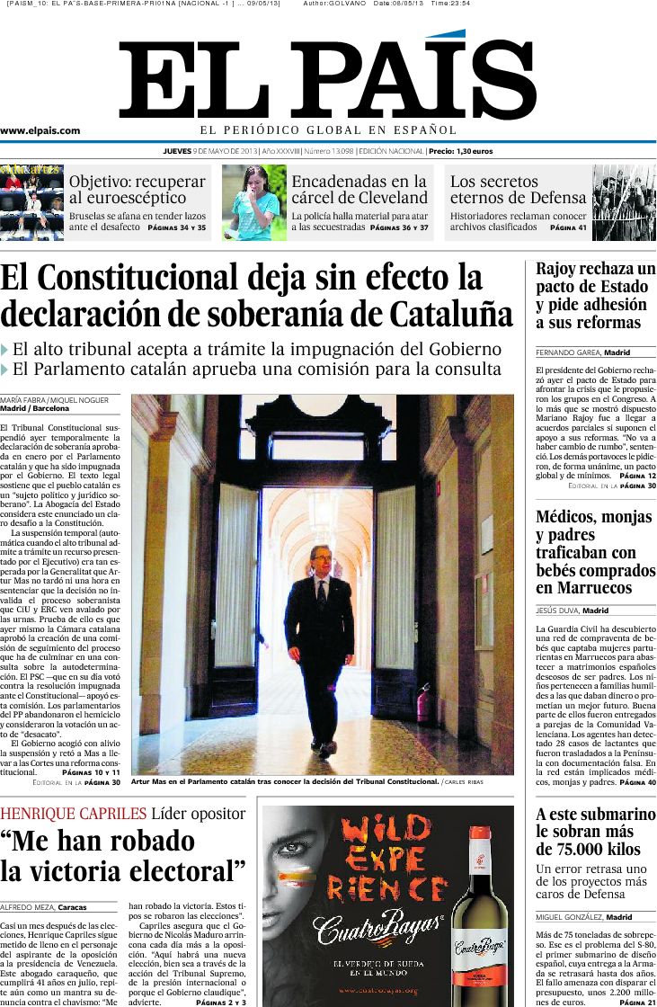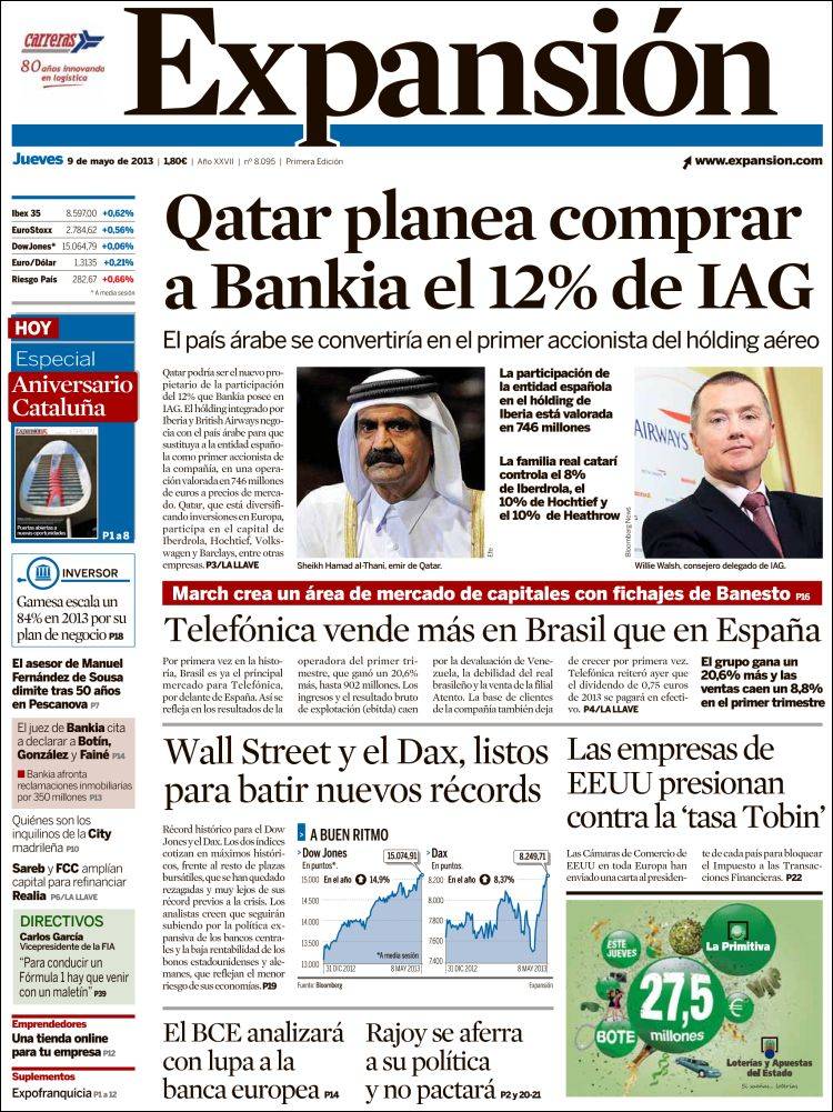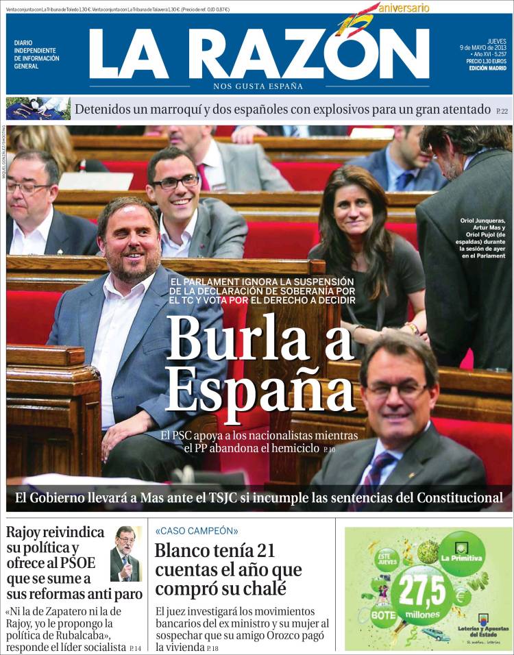 Portadas de los diarios El Mundo, El País, ABC, La Razón, La Vanguardia, La Gaceta, El Periódico, Cinco Días, El Economista, Expansión, Marca, As, Mundo Deportivo y Sport.