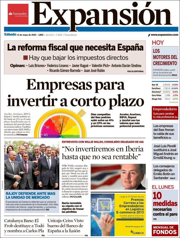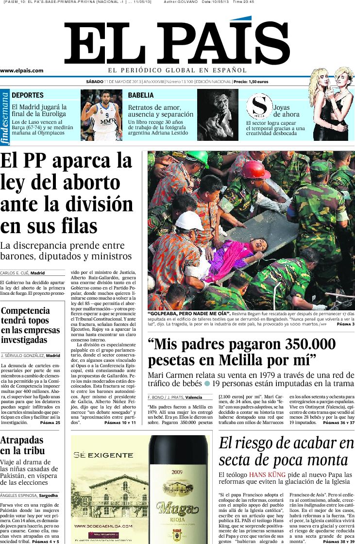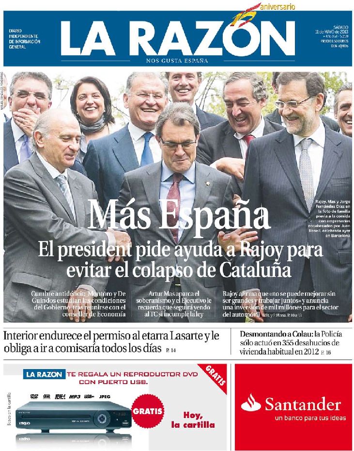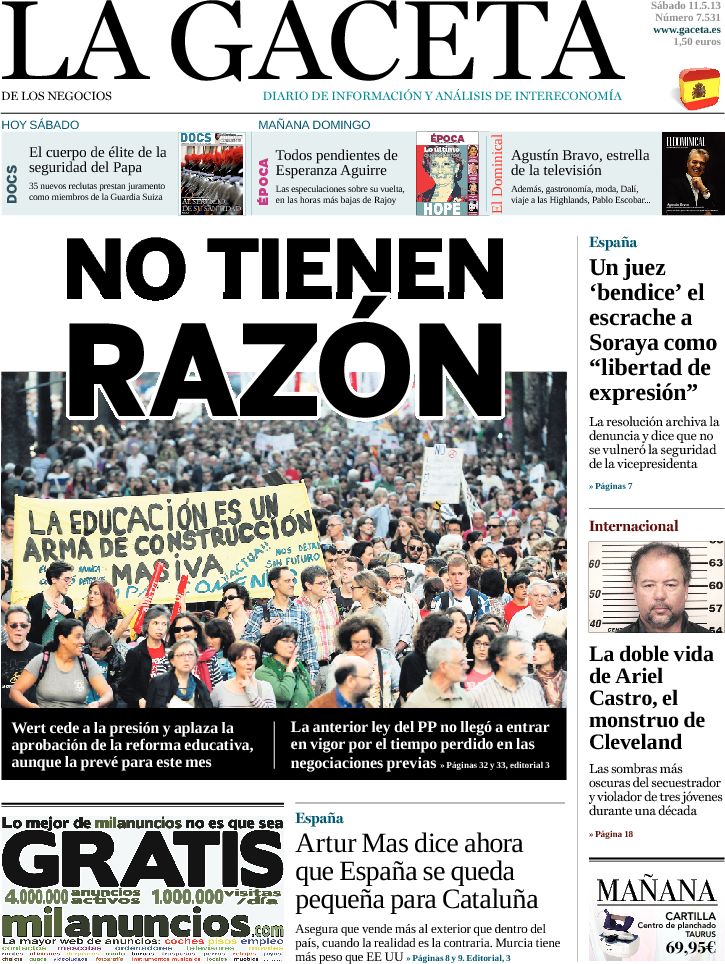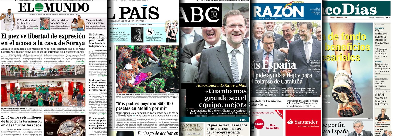 Portadas de los diarios El País, La Gaceta, ABC, La Razón, El Periódico, Cinco Días, El Economista, As y La Vanguardia.