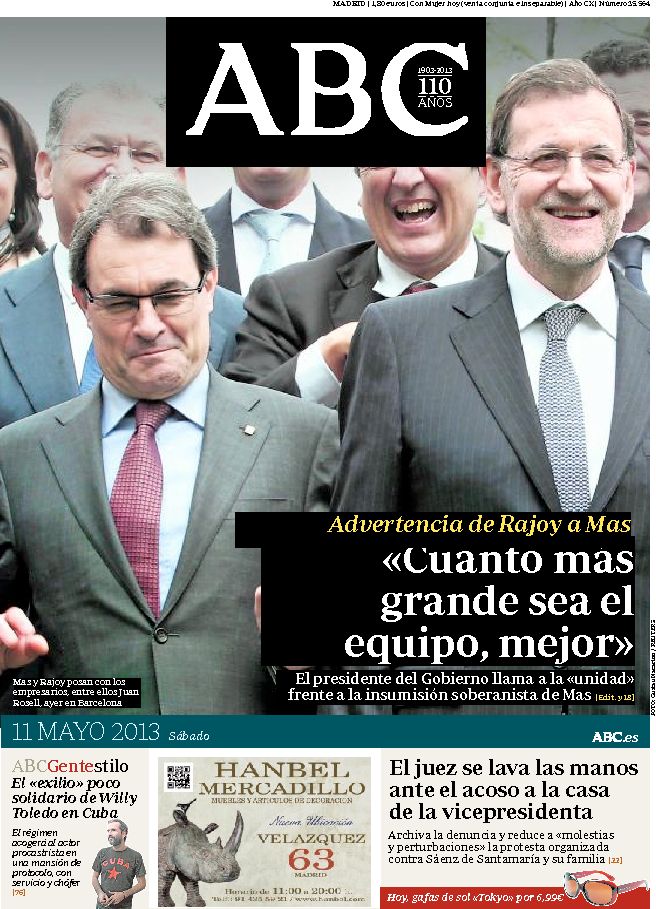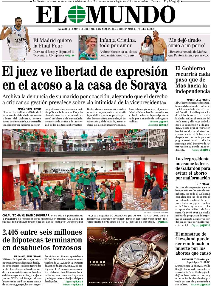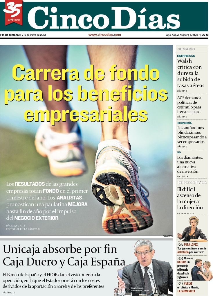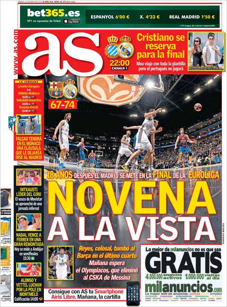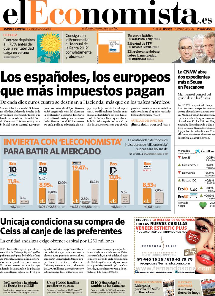 Portadas de los diarios El País, La Gaceta, ABC, La Razón, El Periódico, Cinco Días, El Economista, As y La Vanguardia.