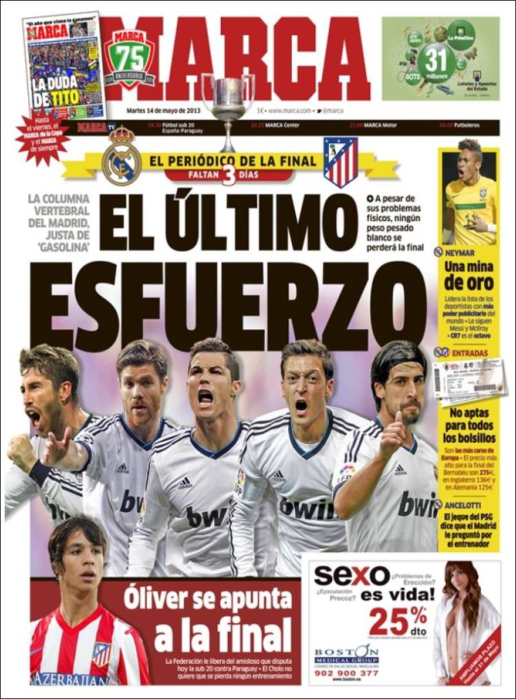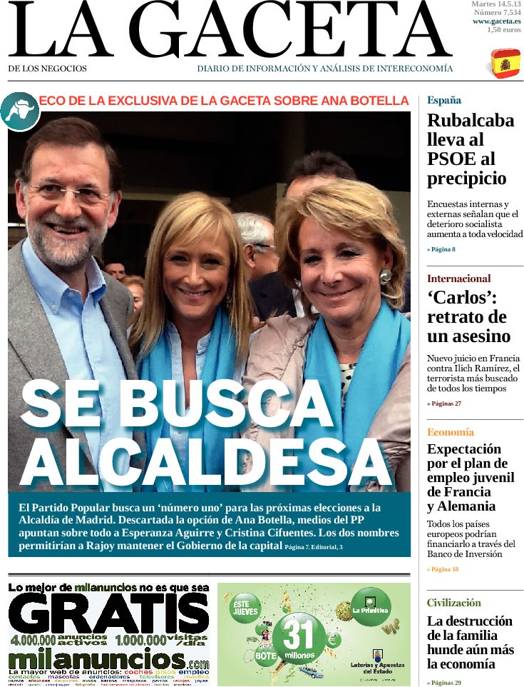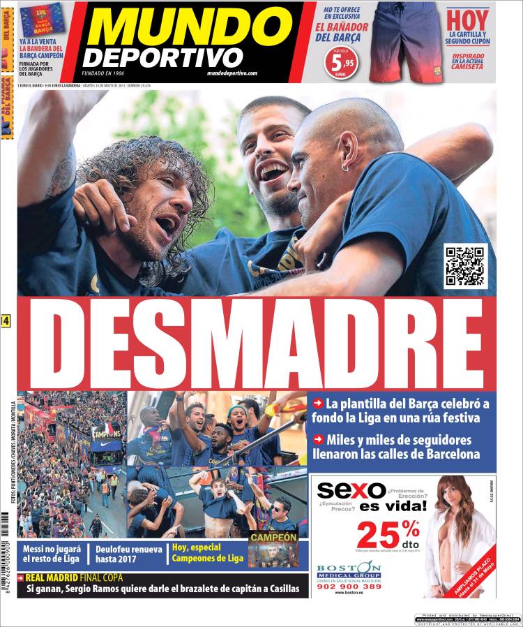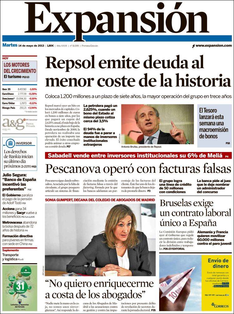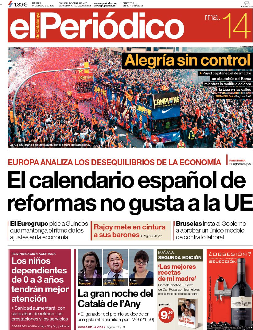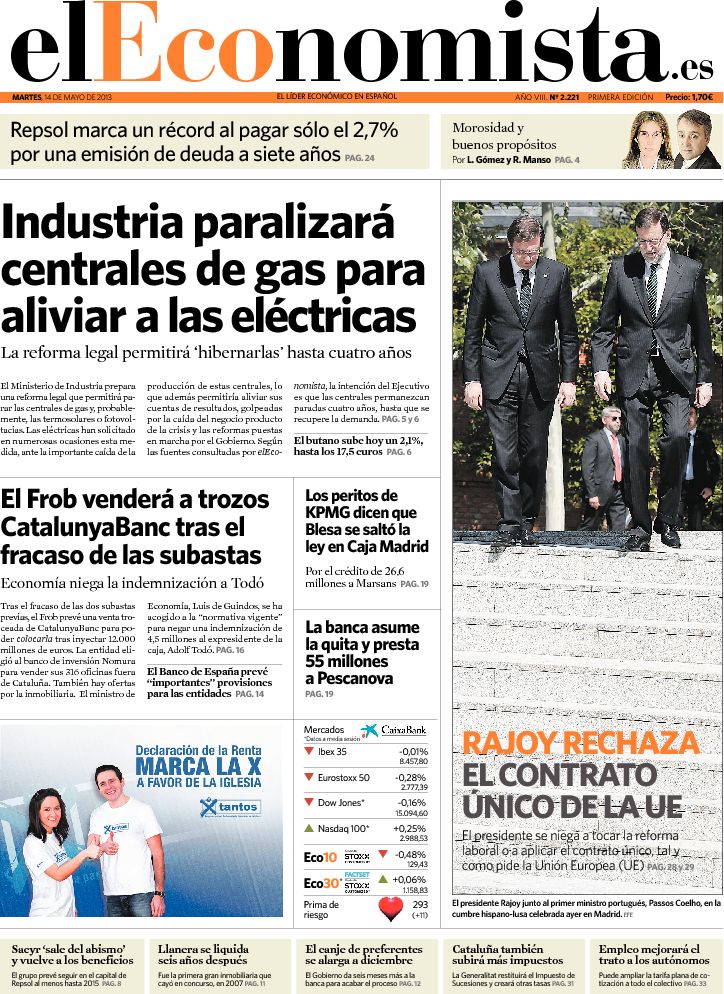 Portadas de los diarios El Mundo, El País, ABC, La Razón, La Vanguardia, La Gaceta, El Periódico, Cinco Días, El Economista, Expansión, Marca, As, Mundo Deportivo y Sport.