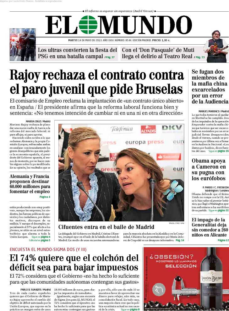 "Rajoy rechaza el contrato contra el paro juvenil que pide Bruselas"
