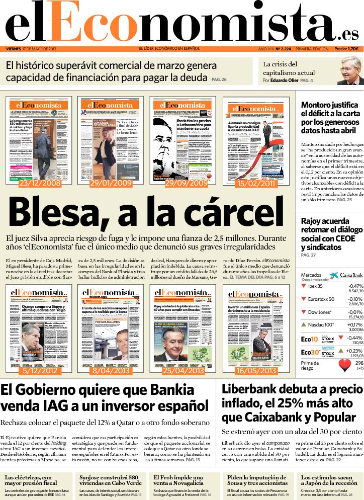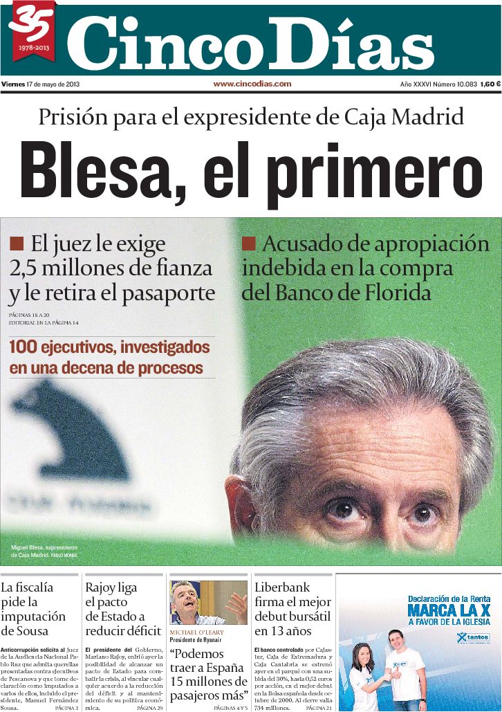 "El juez encarcela al expresidente de Caja Madrid Miguel Blesa"