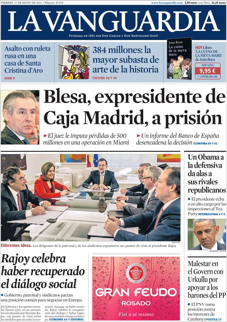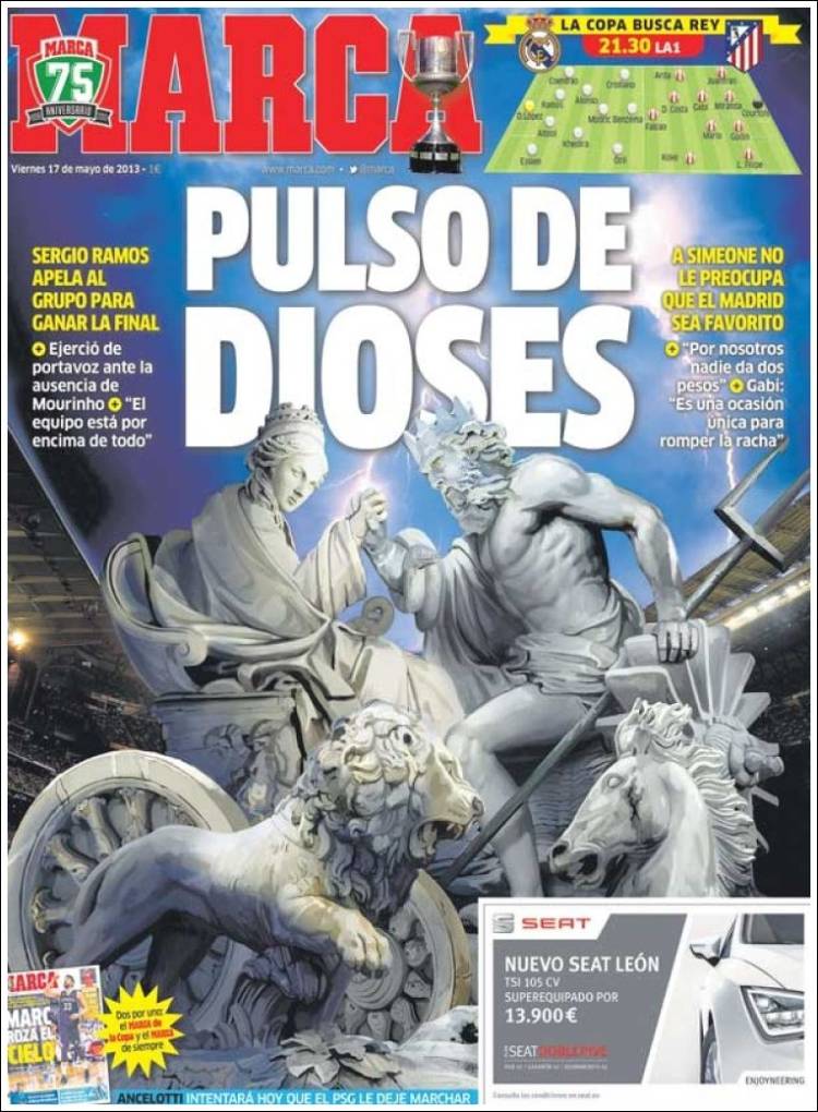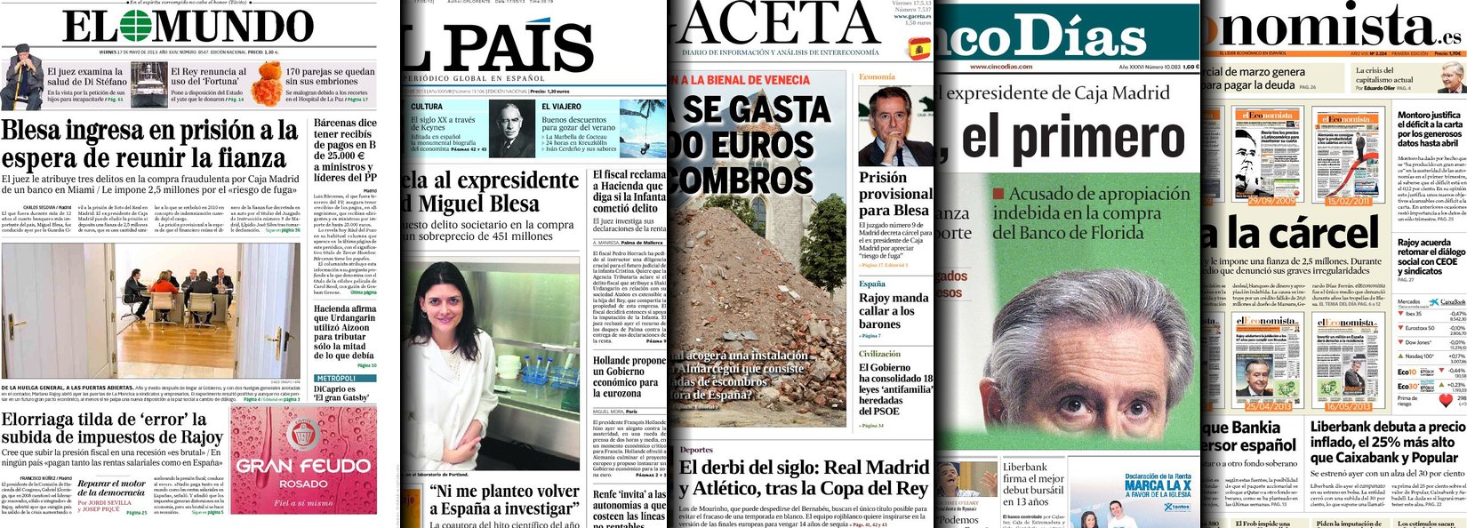 Portadas de los diarios El Mundo, El País, ABC, La Razón, La Vanguardia, La Gaceta, El Periódico, Cinco Días, El Economista, Expansión, Marca, As, Mundo Deportivo y Sport.