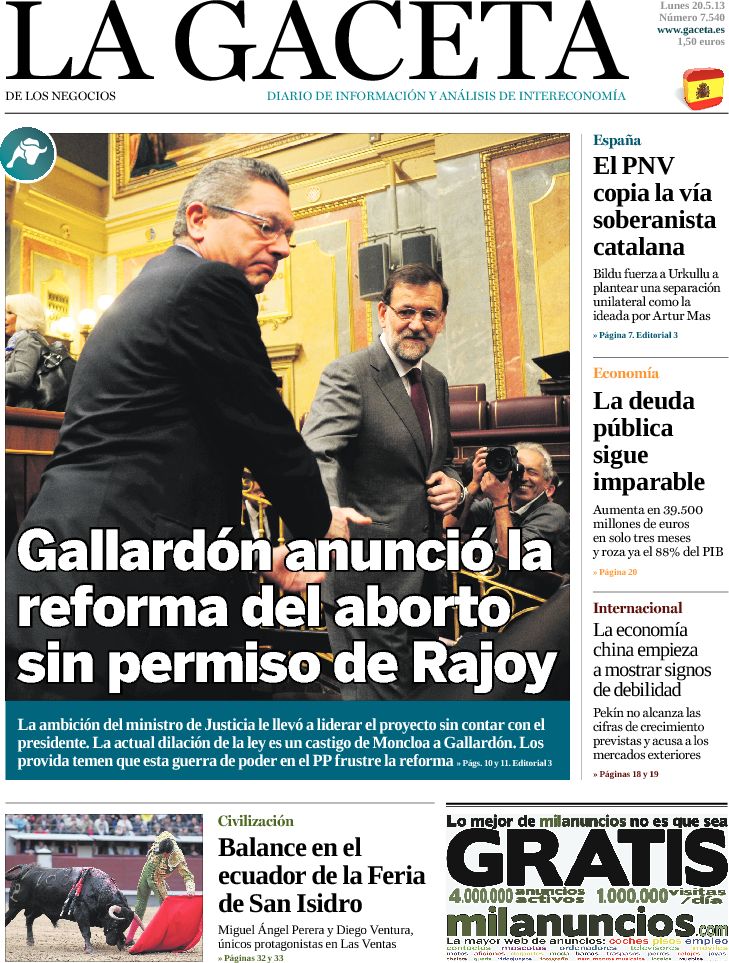 "Gallardón anunció la reforma del aborto sin permiso de Rajoy"